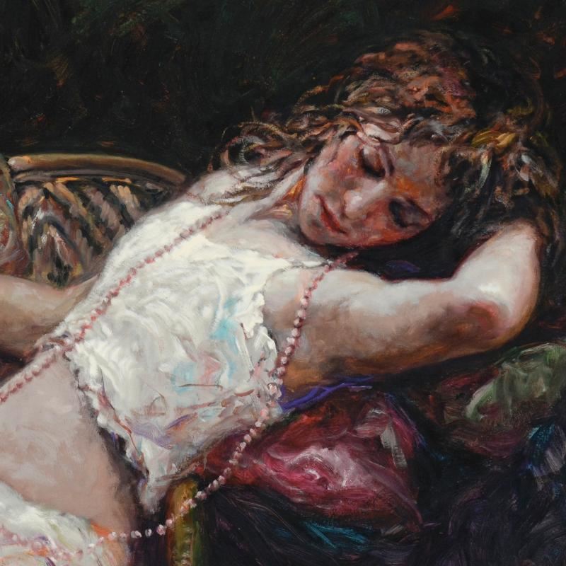 "El Collar Rosa (2012)" limited edition mixed media serigraph on hard-board panel by Royo, numbered and hand signed by the artist! Includes Certificate of Authenticity! Measures approx. 26" x 12.5" (image).