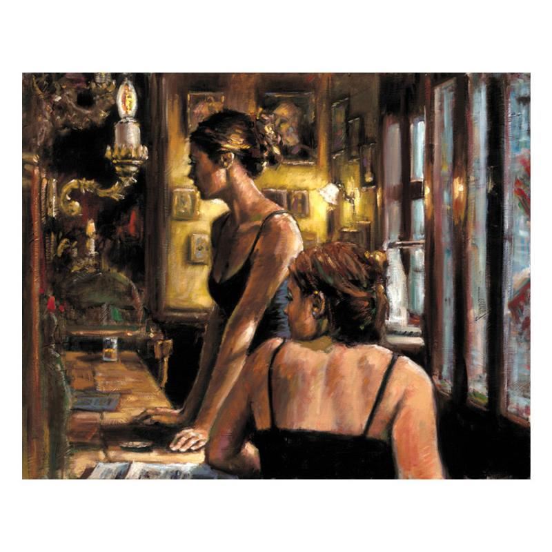 "El Federal Café" is a hand embellished limited edition giclee on stretched canvas by Fabian Perez. The piece is numbered and hand signed by the artist and comes with a Certificate of Authenticity. Measures approx. 32" x 40" (image). Please allow 5 additional business for items that include canvas stretch or framing.