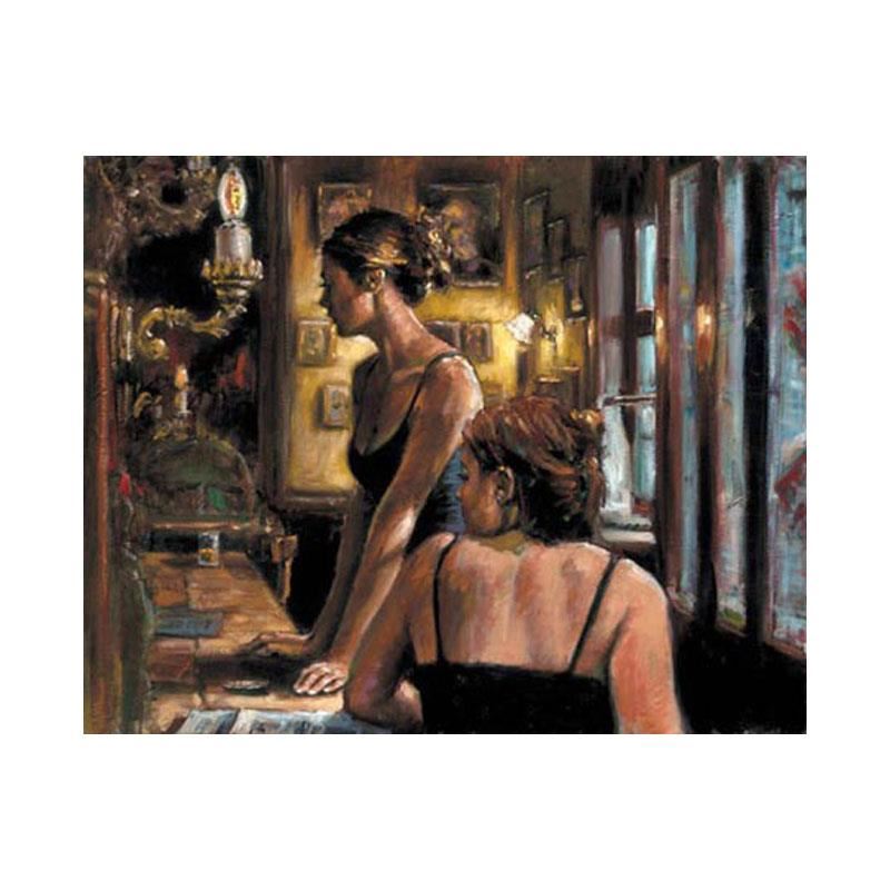 El Federal Cafe by Perez, Fabian. All available information is listed in the description and shown in the photo. "El Federal Cafe" is a hand textured limited edition giclee on stretched canvas by Fabian Perez. The piece is numbered and hand signed. Includes a certificate of authenticity. Measures approximately 20" x 25".
