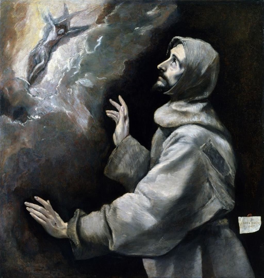 Artist: El Greco - Title: Saint Francis Receiving the Stigmata - Medium: Fine Art Reproduction Giclee on Canvas - Image Size: Approximately 32 inches x 30.25 inches - Unframed on Unstretched Canvas - Biography: Domenikos Theotokópoulos (1 October 1541 - 7 April 1614),[2] most widely known as El Greco ("The Greek"), was a Greek painter, sculptor and architect of the Spanish Renaissance.