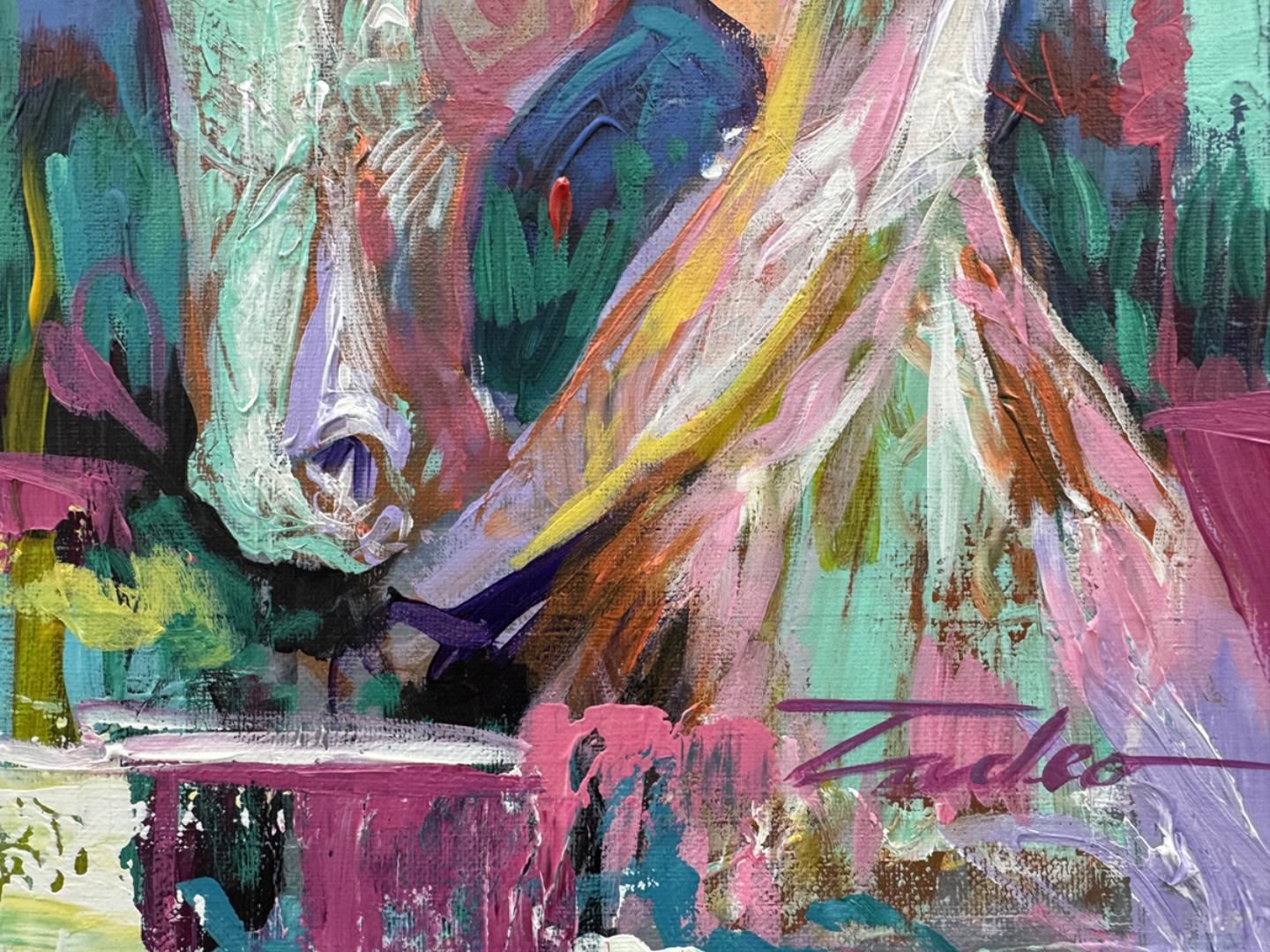 Dazzling original acrylic on canvas, Hand signed by artist. This artwork comes beautifully framed and ready to hang