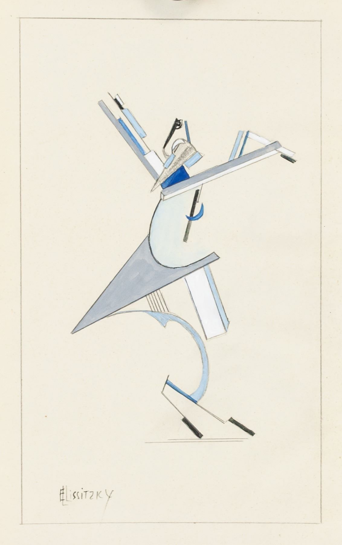 Mixed media on paper. Featuring suprematist composition. Signed "El Lissitzky" to the bottom left. Attributed to El Lissitzky (1890-1941, Russian). 22 x 13 cm (8.5 x 5 in).