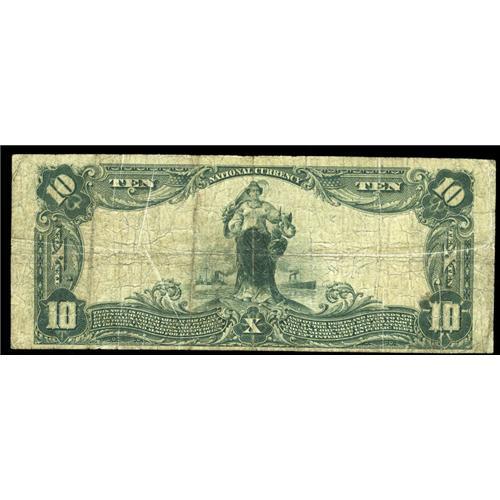 <B>El Paso, TX</B></I> - $10 1902 Plain Back Fr. 632 <B>The Border NB</B></I> Ch. # (S)10974<BR>This border town issuer was in business for less than a decade when it was liquidated in 1924. The stamped signatures on this piece rest on a solid paper. <B>About Fine.</B></I>