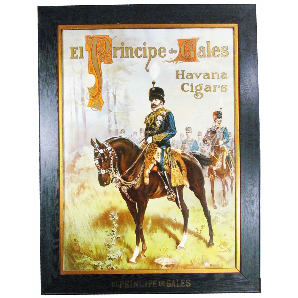 El Principe de Gales Havana Cigars Paper Sign in rare original wood frame. Light age discoloration in the sky otherwise excellent condition. 32 1/2 X 43 inches overall.