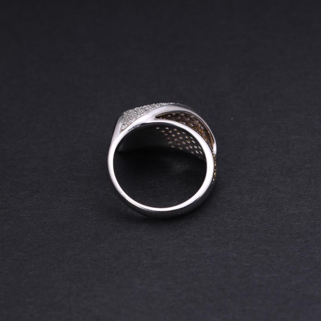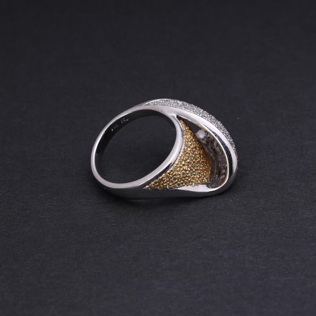 Elaborate 18k gold cluster ring; each overlapping fold set with numerous yellow and white diamods, the interior band marked k18 750 with stylized letter; gross weight 11.9 g, size 7