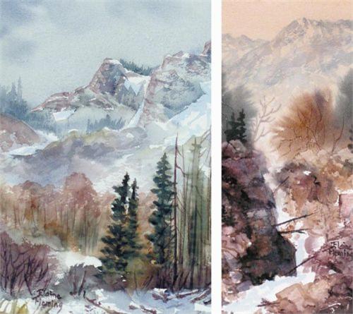 <Br>with WATERFALL, ROGER'S PASS Watercolour on paper 9 x 4 ins. LOT OF TWO