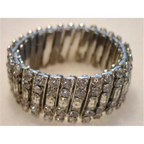 <table width="100%" border="0" cellspacing="0" cellpadding="4"><tr><td><em> </em></td></tr><tr> <td width="100%"> Here is a very wide 1 1/4 inch clear sparkling rhinestone elastic bracelet. There are 2 circular stones, then a rectangle one, then 2 more beneath the center one. I counted about 140 sparkling handset rhinestones. Each stone is handplaced and held firmly intact by 4 individual prongs. A very nice 1950s or so elastic bracelet. The outside is in excellent condition. The inside rhodium metal has some wear to that, but it cannot be noticed at all when being worn. I just think whoever owned this actually wore it a few times. No other wear noted. </td></tr><tr> <td> </td></tr><tr> <td>Reference #: brarhinestoneelastic1</td></tr><tr><td>Condition:see description</td></tr><tr><td>Year:1950s</td></tr><tr><td>Title: Elastic Bracelet Wide 140 Rhinestones</td></tr><tr><td>Location:Missoula Montana</td></tr></table>