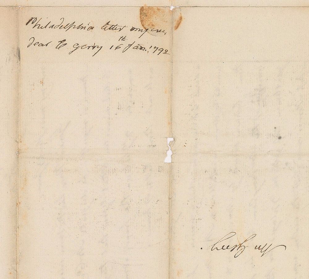 Of all of America's founders, Elbridge Gerry was one of the most vocal opponents of creating a powerful centralized government—indeed one of "the very few to oppose the torrent of giving up all political authority into [the president's] hands." A delegate to the 1787 Constitutional Convention, he refused to sign the Constitution on the basis of his general opposition to a strong federal government and due to its lack of a Bill of Rights. Keeping in line with this thinking, Gerry was also a major opponent to the establishment of a standing army. However, putting his fears of a standing army and a too-powerful executive aside, Gerry could at times agree with the administration's course. Such was the case with the Indian Wars. Some time before this letter was written, Congress had learned of the disastrous St. Clair expedition, in which troops led by Arthur St. Clair suffered a 97% casualty rate against a force of Miamis, Shawnees, and Delawares. As a result, Congress initiated its first investigation of the executive branch and Knox came under severe scrutiny. Gerry, as this letter indicates, was one of his supporters. Knox would be absolved of all blame in May, when the House of Representatives accepted his explanation of the defeat. A fantastic letter revealing Gerry's complex political relationships, and demonstrating his enormous respect for the nation's first commander-in-chief.