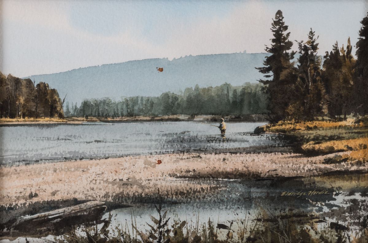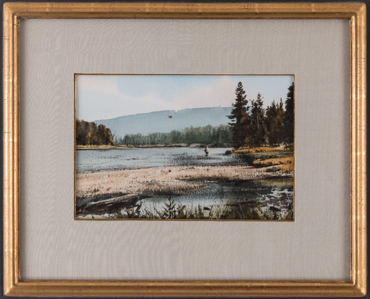 Eldridge Hardie (1940 - ). Buffalo Ford-Yellowstone River. 6 ¾" x 10" watercolor. Signed lower right. Verso: Titled, signed and dated 1988.