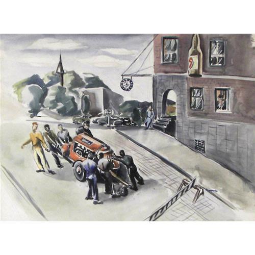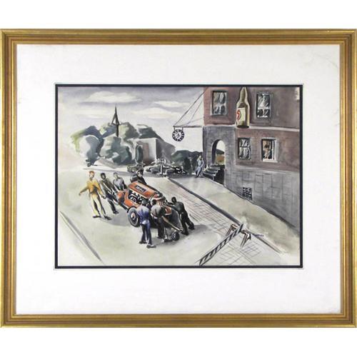 Eleanor Platt (1910-1974) Watercolor, "Men at Work", 1946, sight size 12 7/8" x 17 3/8", signed lower right