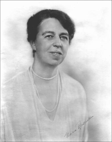 Eleanor Roosevelt. Lovely photo, uncommon thus, of Mrs. F.D.R. as a young woman, wearing white dress with pearl necklace. 7 -1/2 x 9 -1/2 . Fine signature at lower right a bit light.