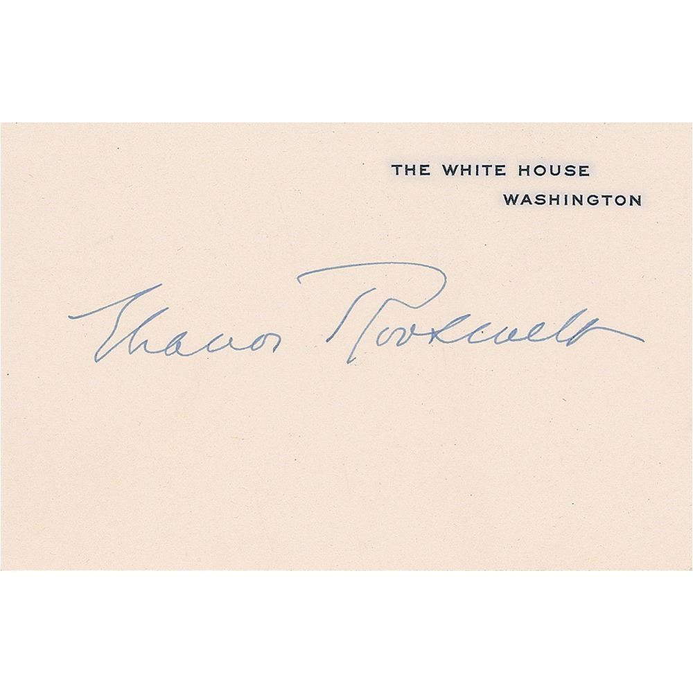 White House card, 4.25 x 2.75, signed neatly in ink by First Lady Eleanor Roosevelt. In very fine condition. Accompanied by the original White House mailing envelope postmarked January 28, 1935.