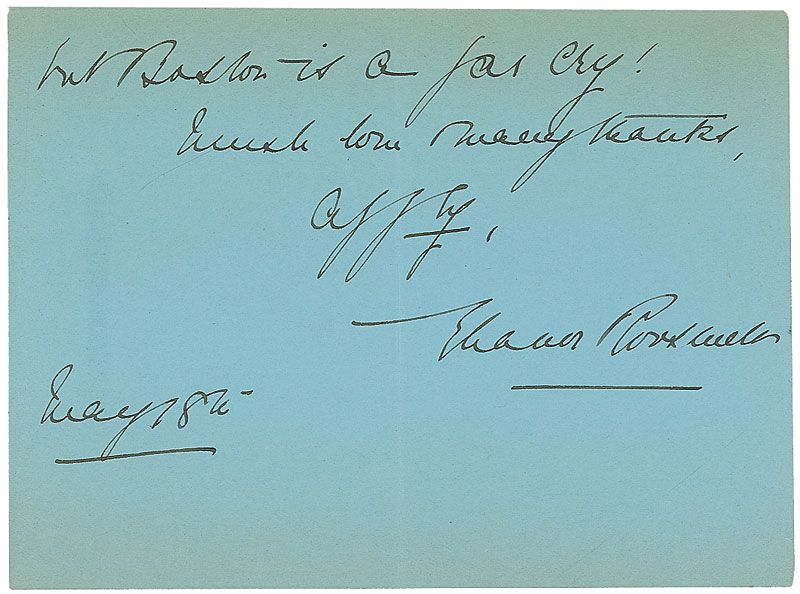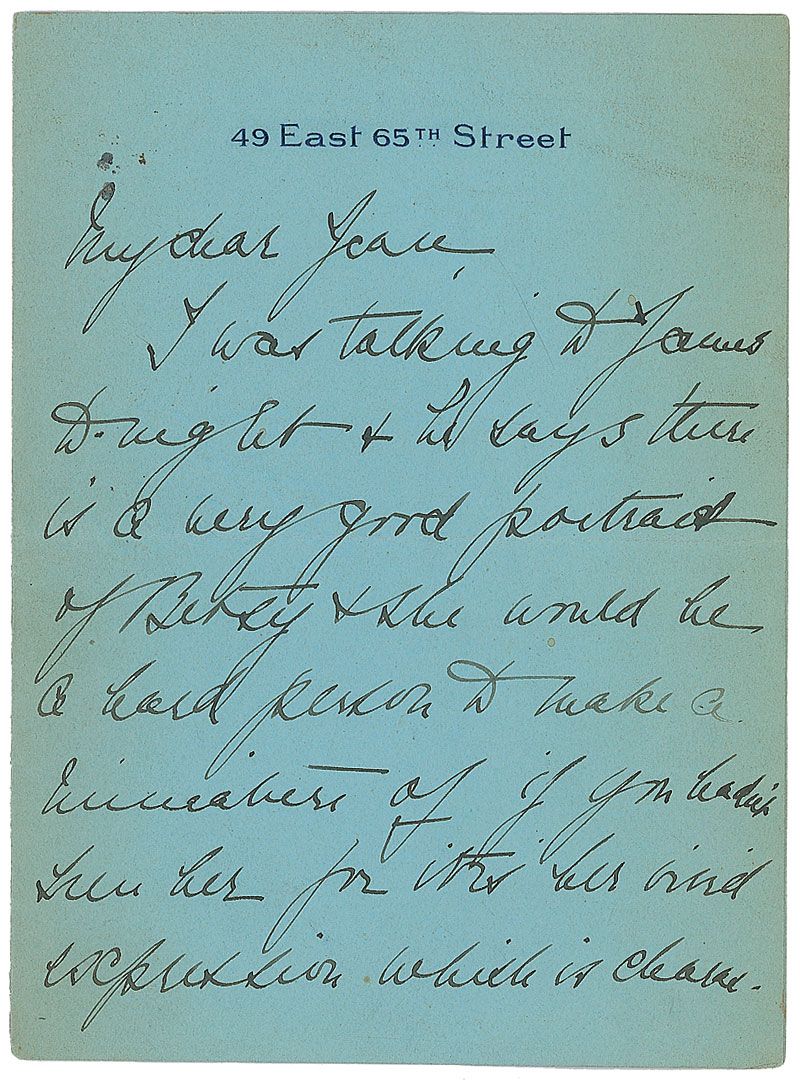 Scarce ALS, three pages on two adjoining sheets, 4 x 5.25, personal letterhead, May 8, no year. Letter to a friend. In part: “He says there is a very good portrait of Betsy & she would be a hard person to make a miniature of if you hadn’t seen her for it’s her vivid expression which is…hard to capture in a photograph.” In fine condition, with toning to edges.