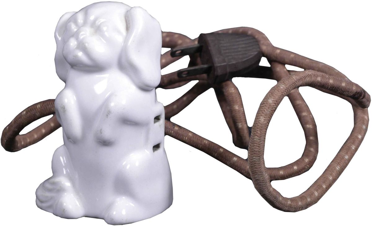 Very rare and unusual ceramic porcelain figural electric 3-way plug in the shape of a dog. Excellent condition. 3 1/2 inches tall. Start Price $40