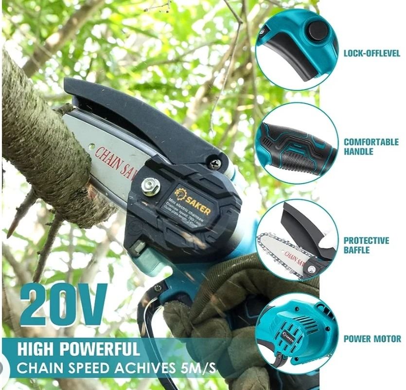 Saker, Mini Cordless Electric Chainsaw 4in, Open Box, Like New Condition