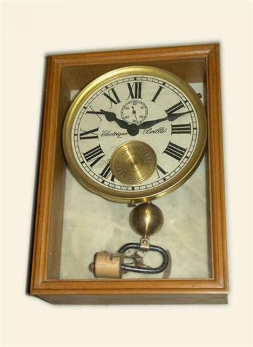 Pendule électrique BRILLE, en bois dur et fond en marbre, en bon état, env. 1930