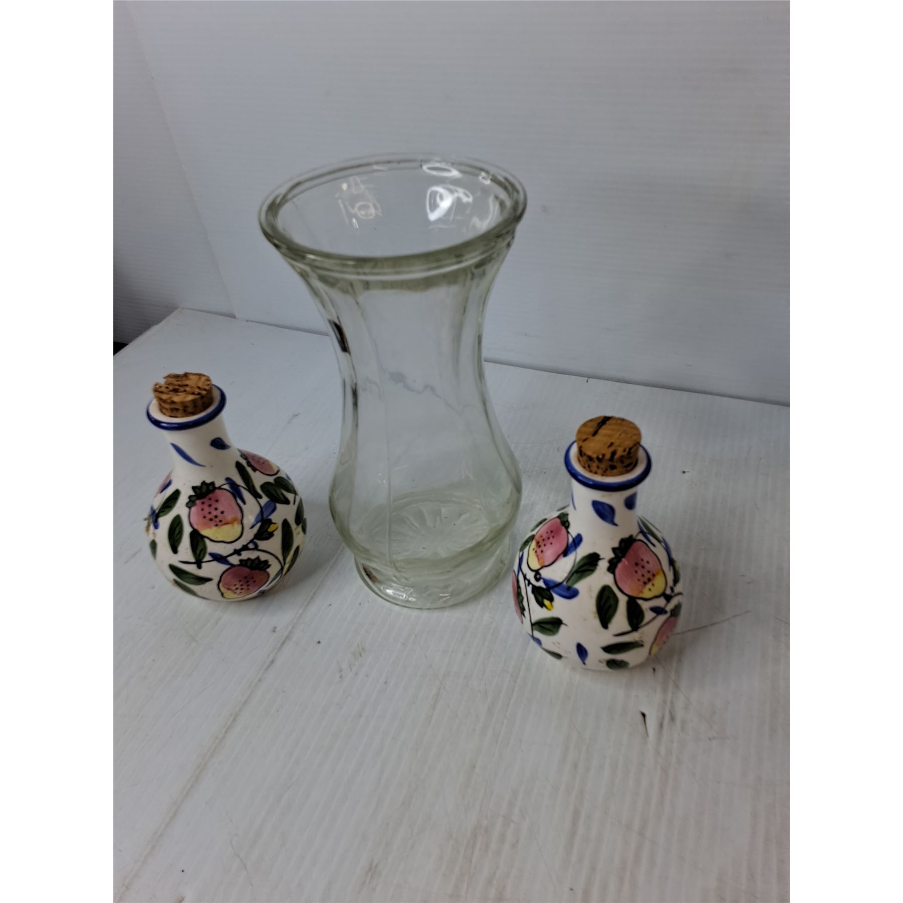 Electric Coffee Percolator- Powers On, (2) Ceramic Decanters, Glass Vase