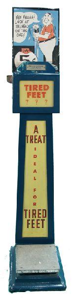 Electric Coin-Op Floor Model Feet Vibration Machine, "Tired Feet?" "A Treat Ideal For Tired Feet"