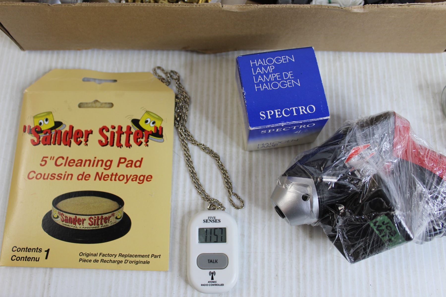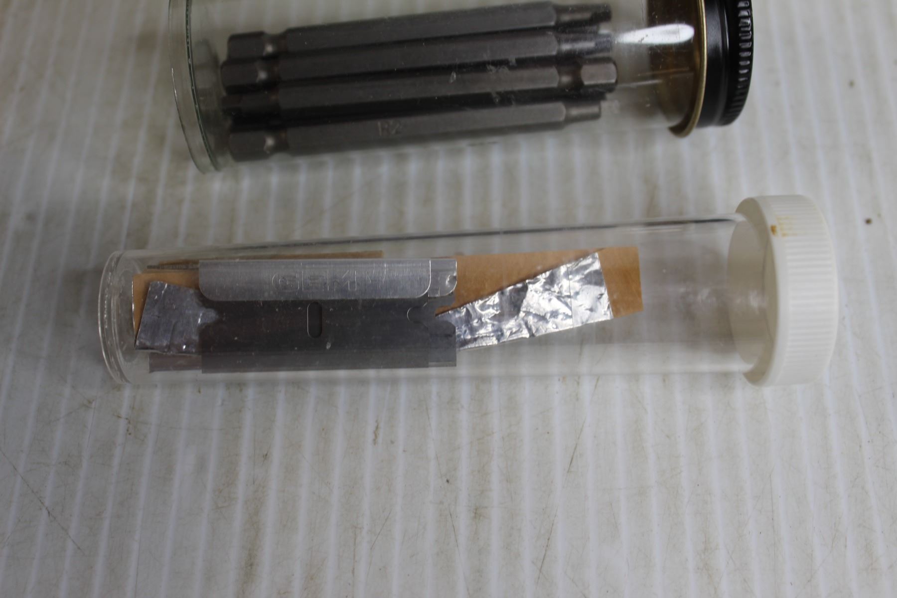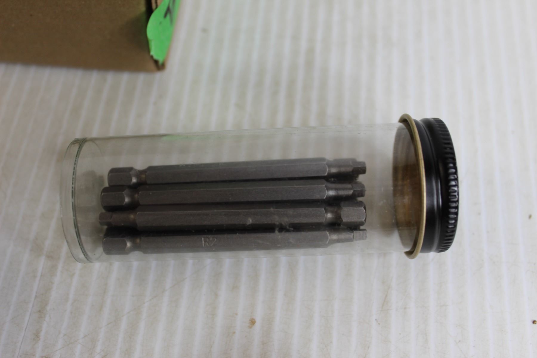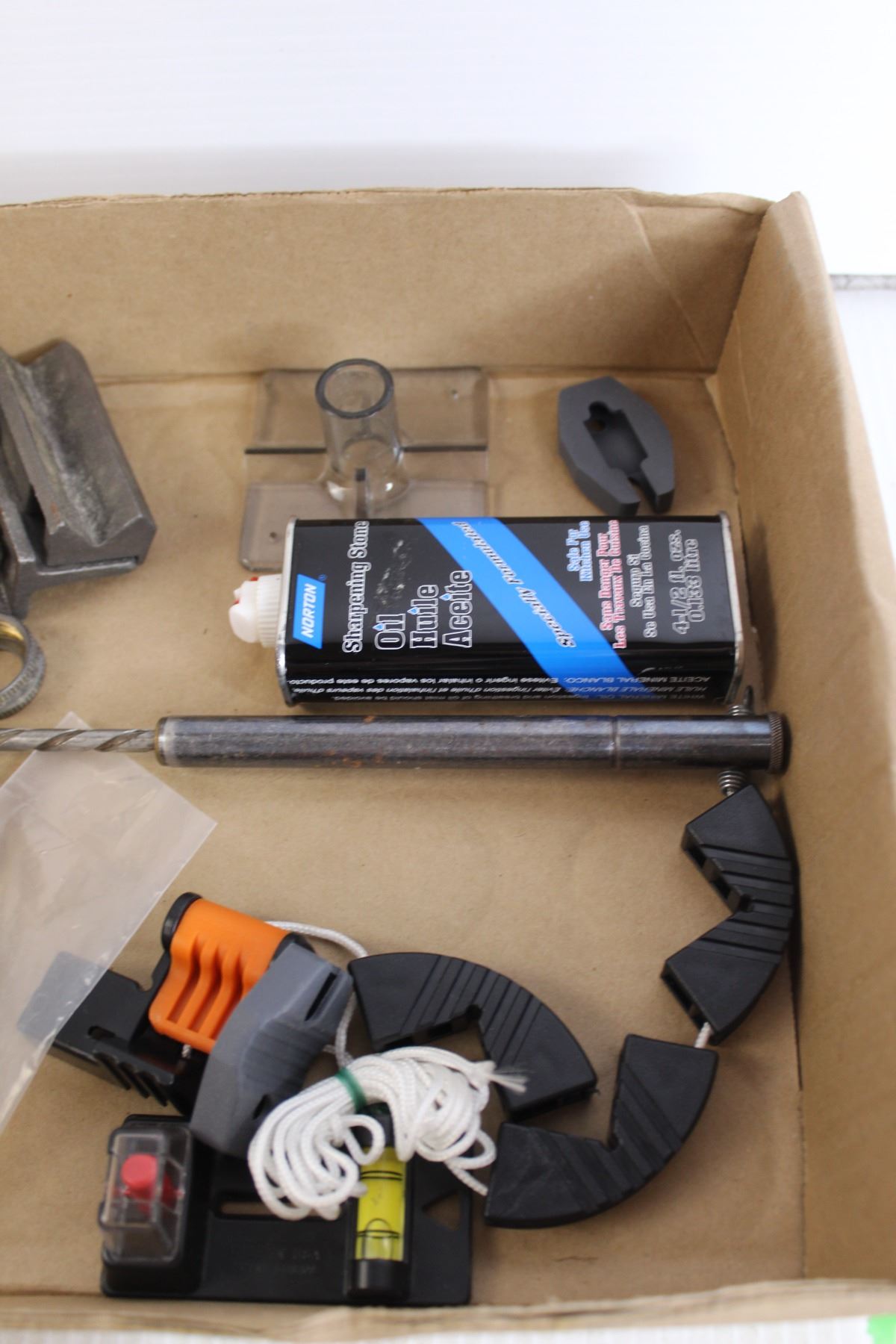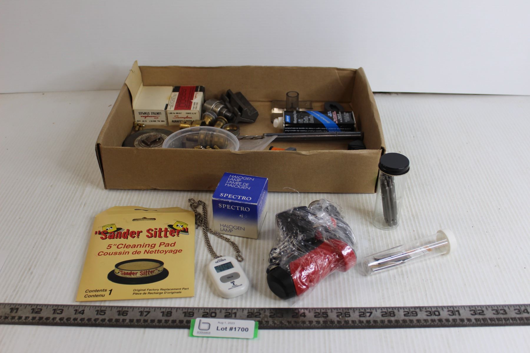 Electric Drill (Untested), Tape Measure, New Robertson Screwdriver Tips, Blades, Builders Tools, Misc.