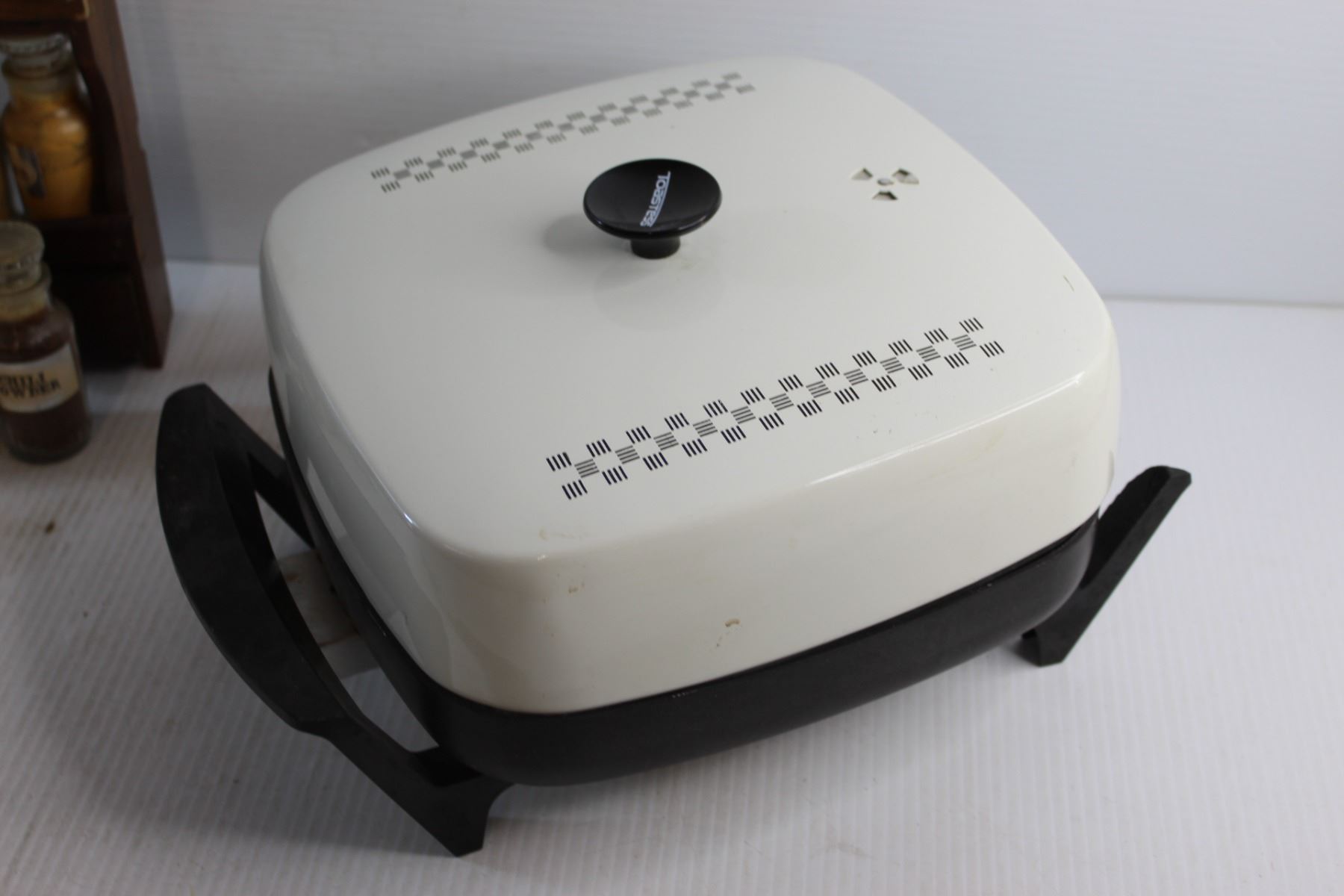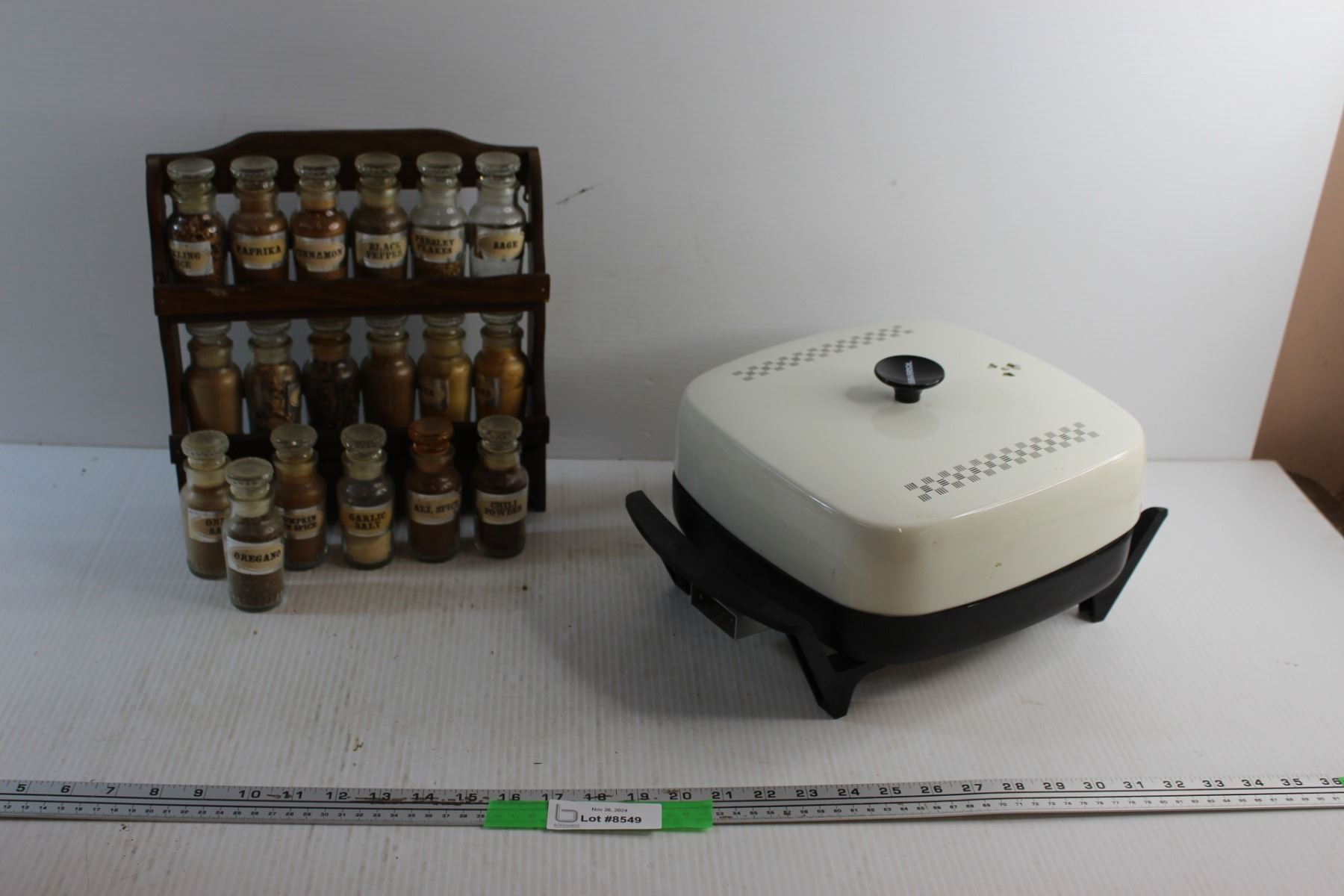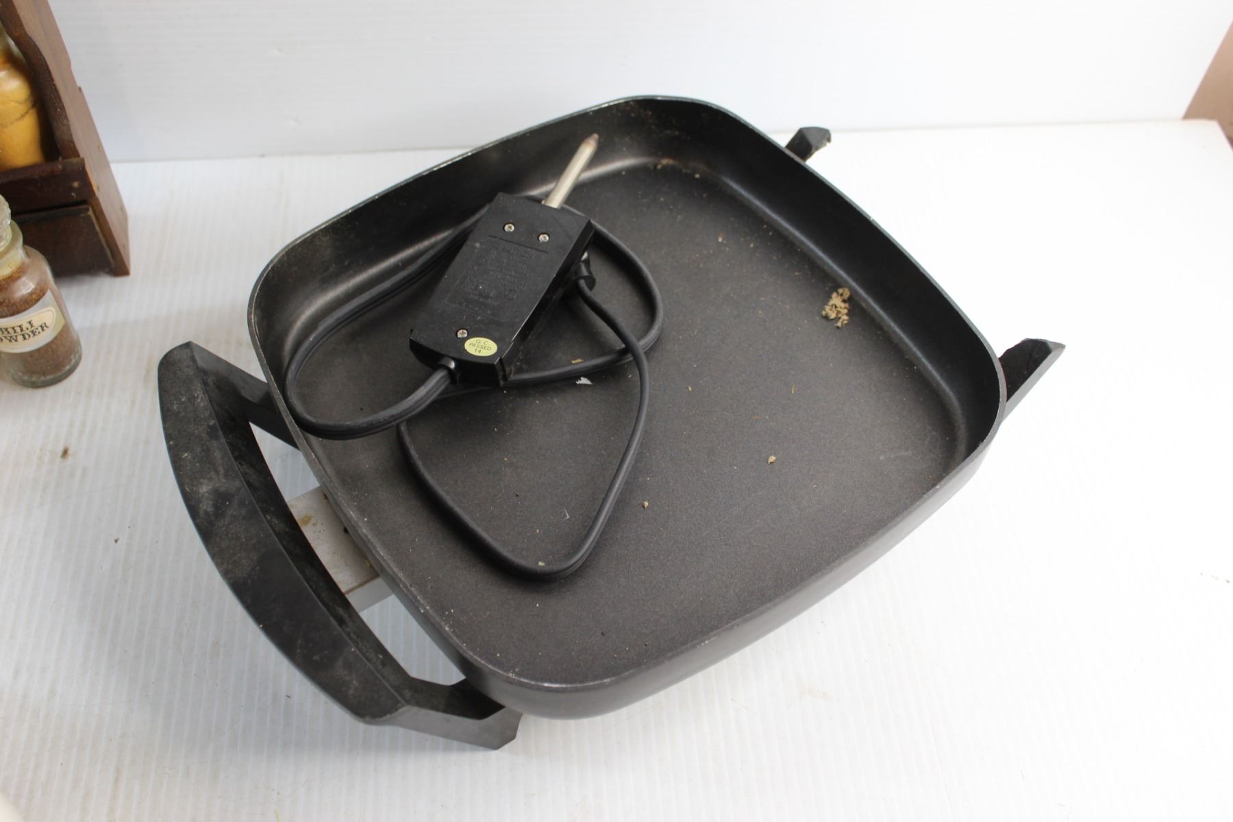Electric Frying Pan and Spice Shakers with Wooden Rack Set