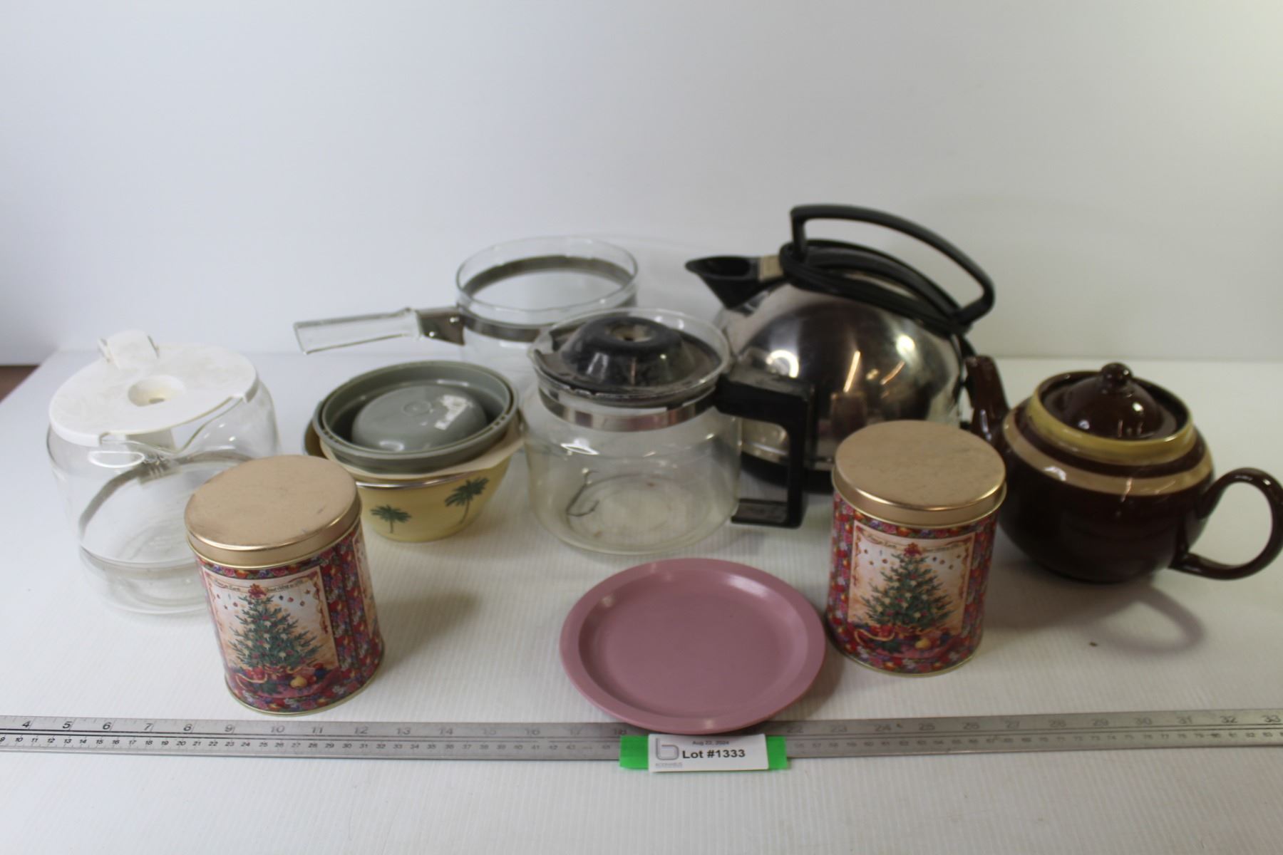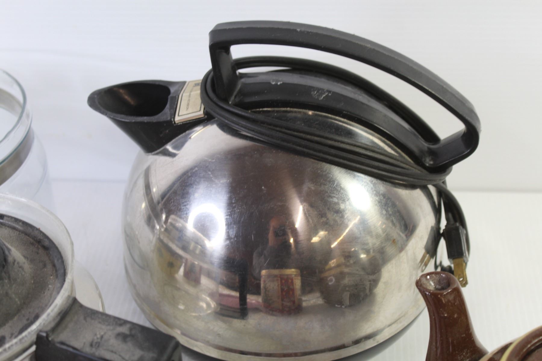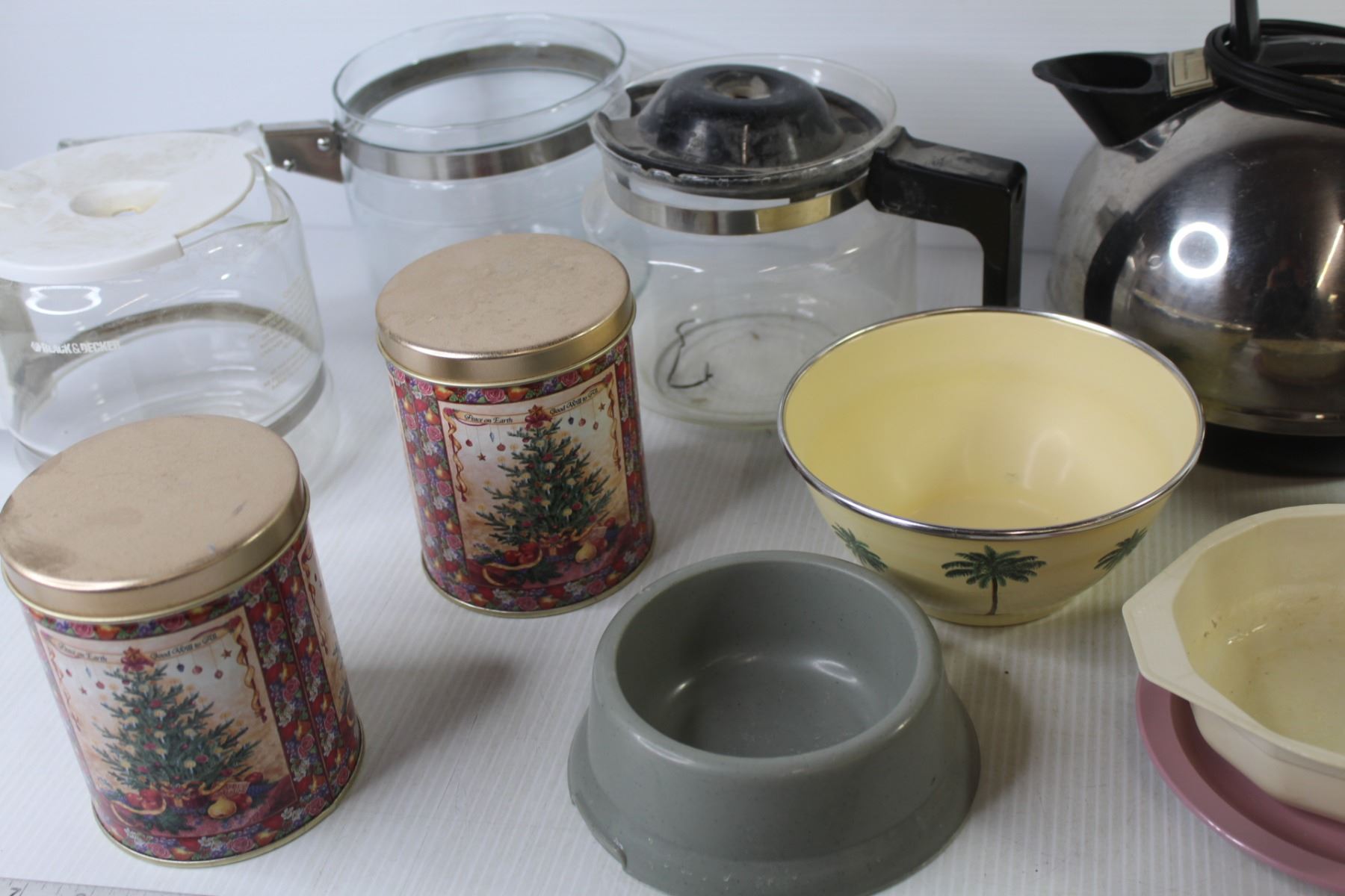 Electric Kettle - Coffee Pots - (2) Christmas Tins - Misc. Items