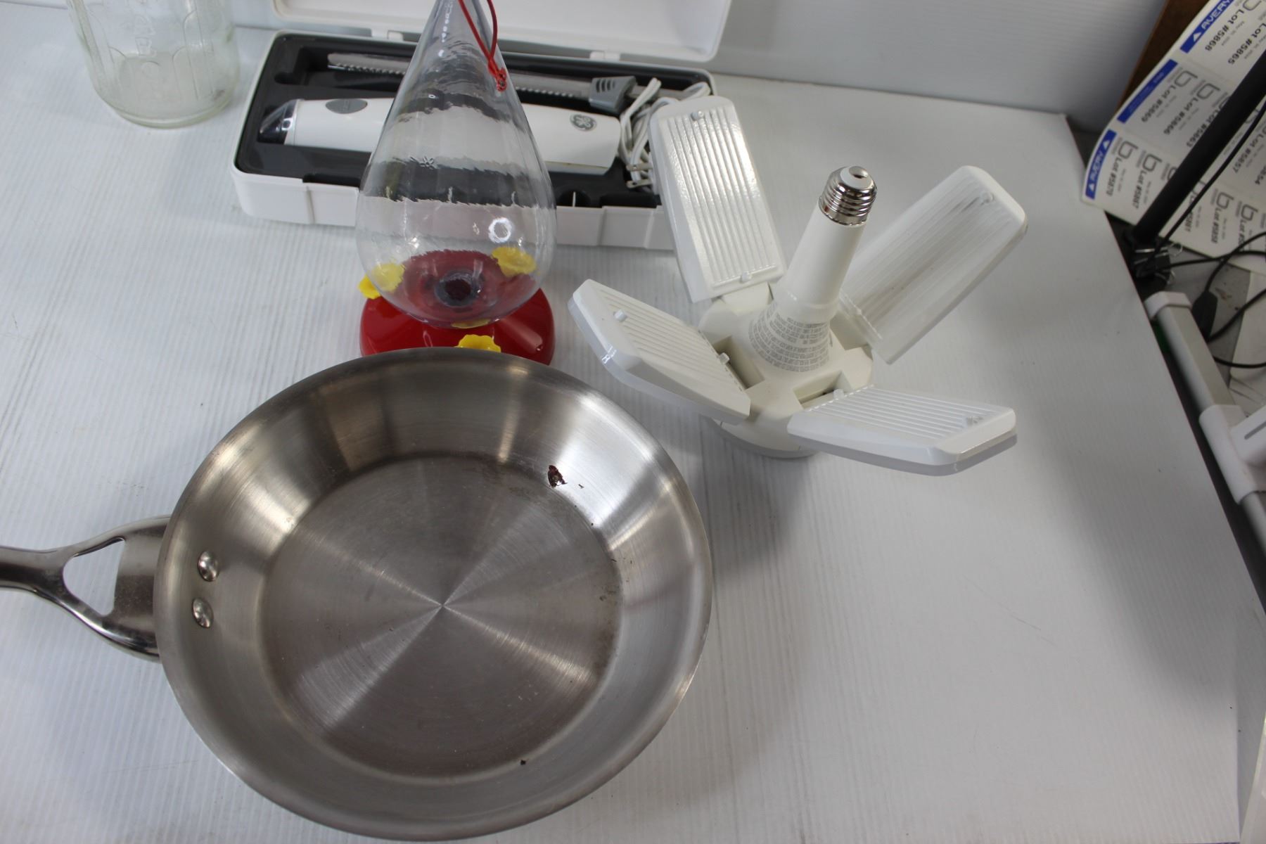 Electric Knife, Hummingbird Feeder, Frying Pan, Misc.