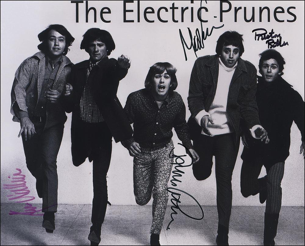 Glossy 10 x 8 group photo, signed in blue and black felt tip by original members Mark Tulin, James Lowe, Preston Ritter, and Ken Williams. In fine condition, with a light diagonal bend to lower left corner.
