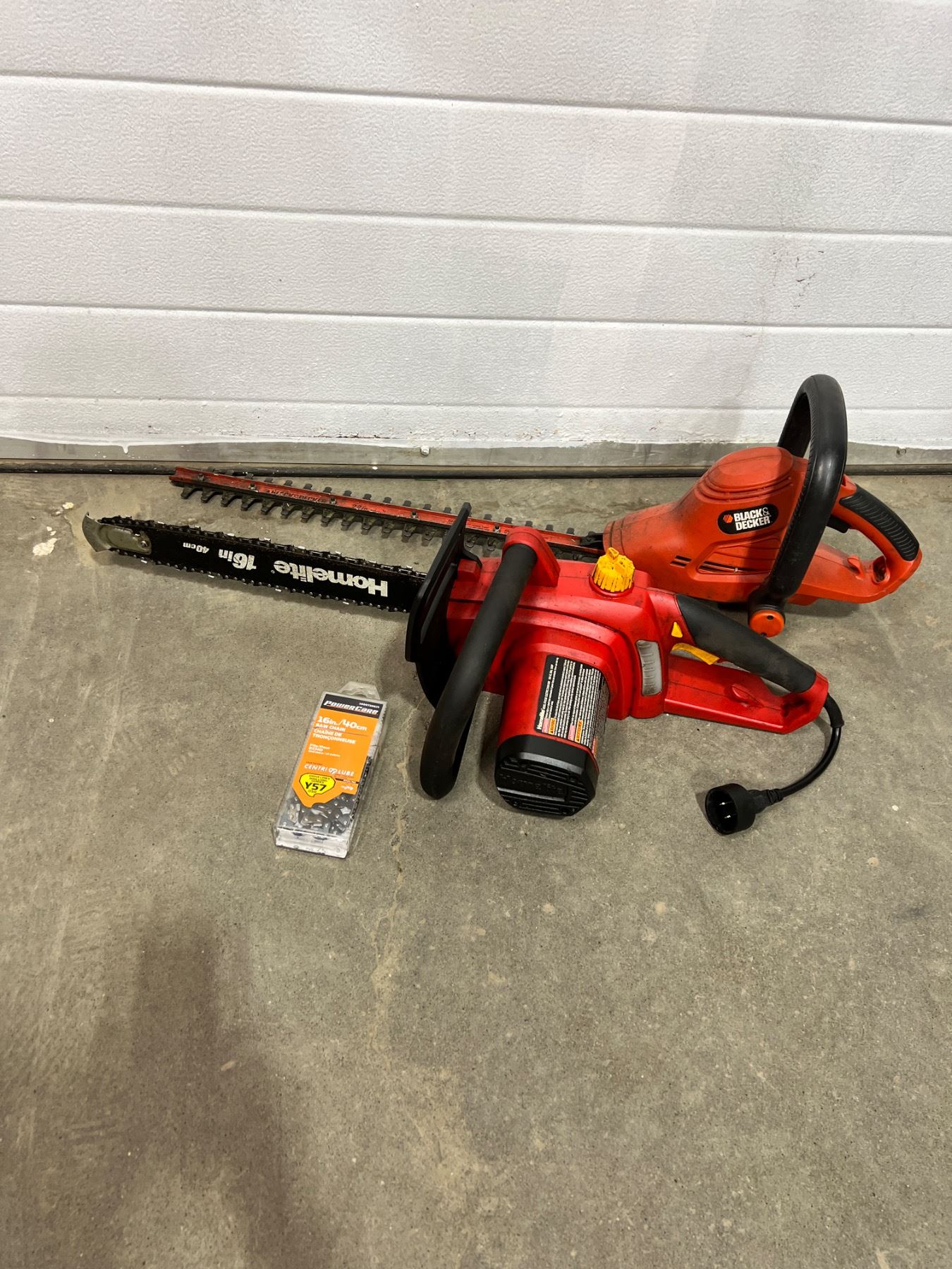 Includes, Homelite 16" Chainsaw with new chain, some oil leaking, Model No. UT43120,