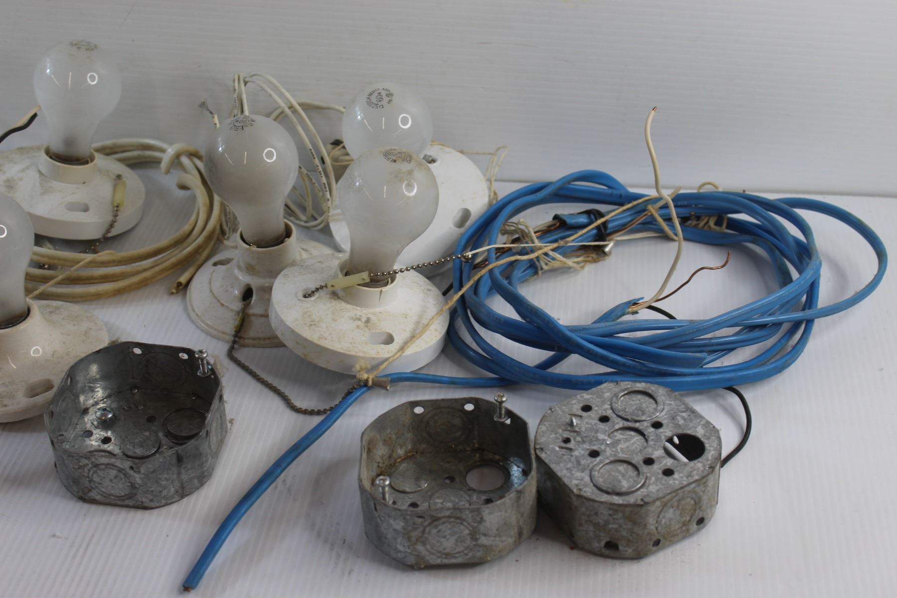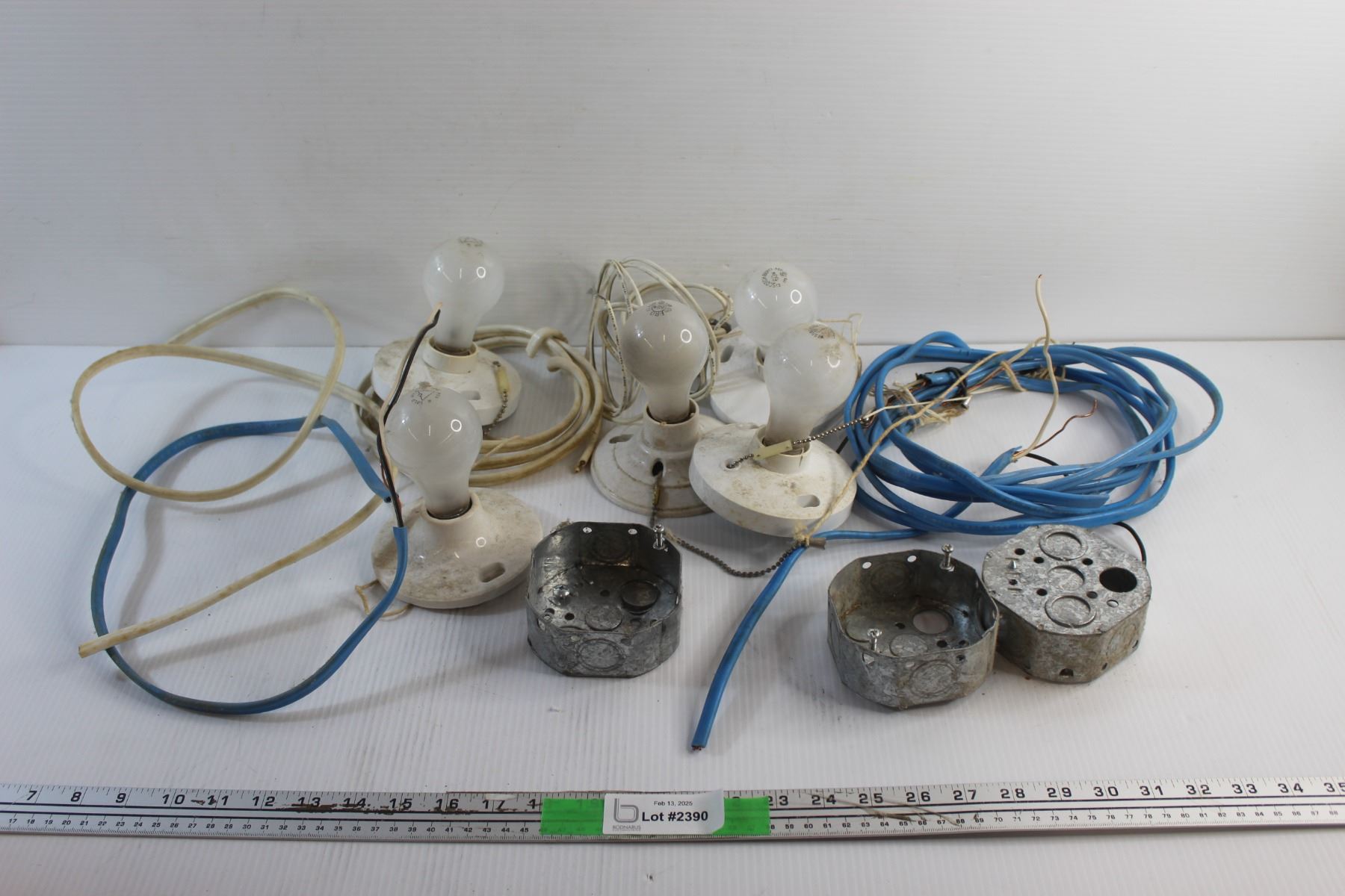 Electric and Light Lot - (5) Light Sockets and Electrical Cords - As Is