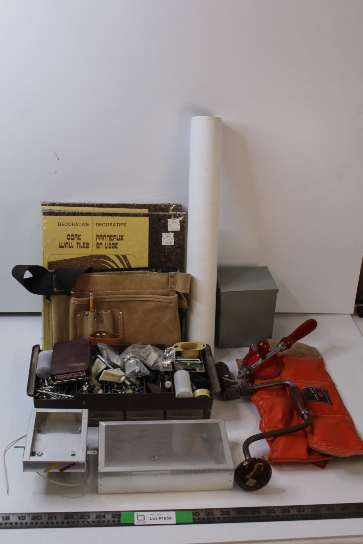 Electrical Boxes / Cork Wall Tiles / Tool Belt / Assorted Fastners / Misc.