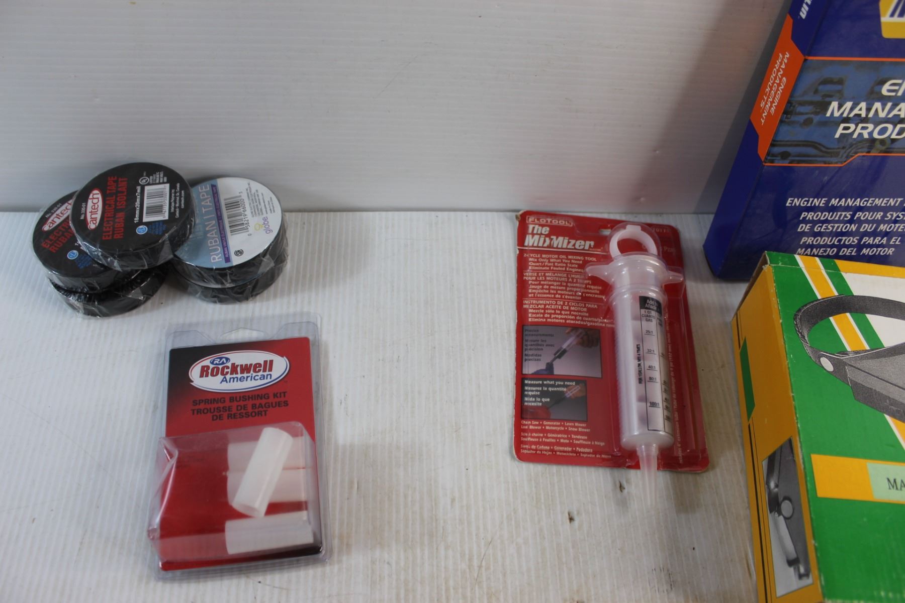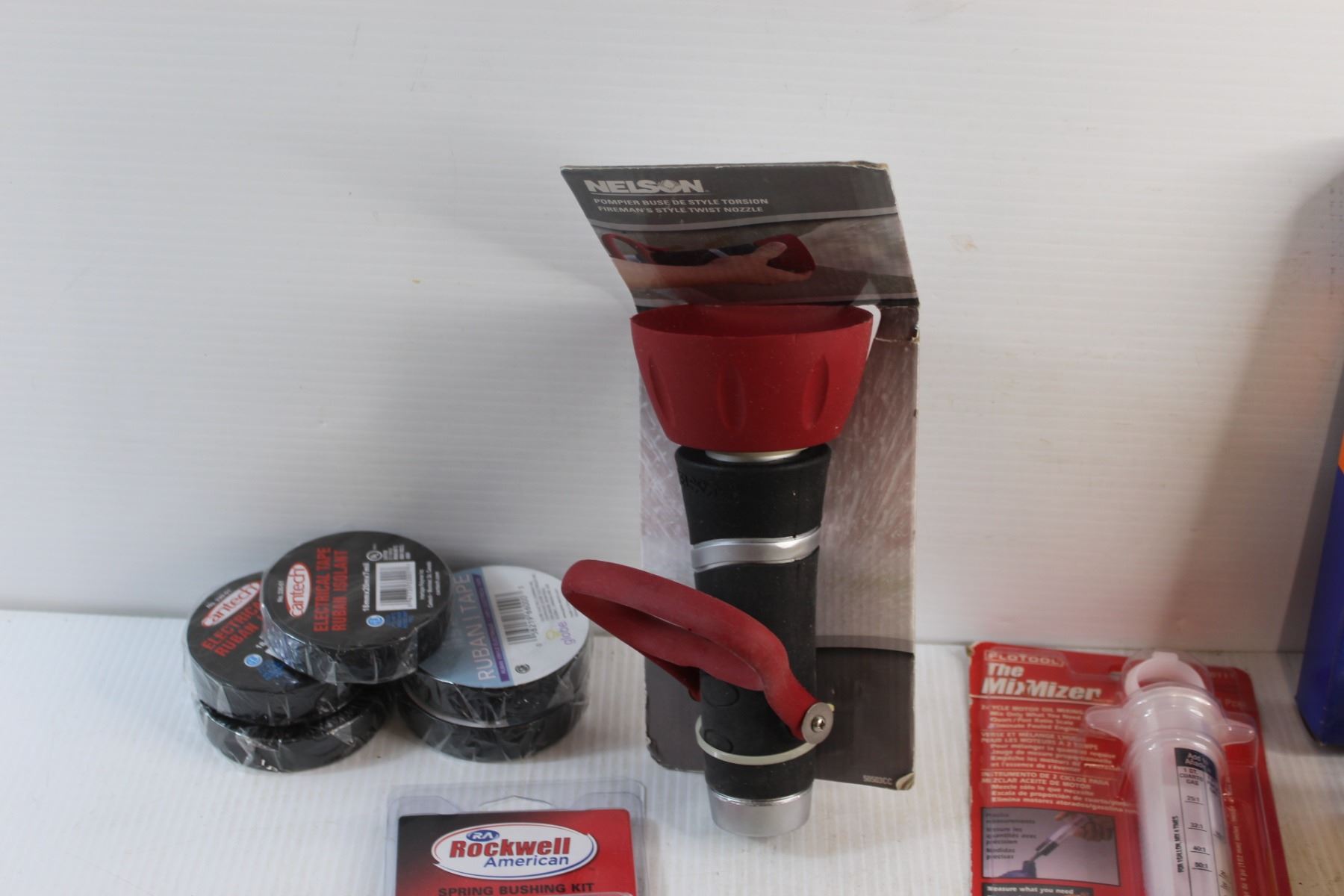 Electrical Tapes, Spring Bushing Kit, Twist Nozzle, 2 Cycle Motor Oil Mixing Tool and Assorted Items