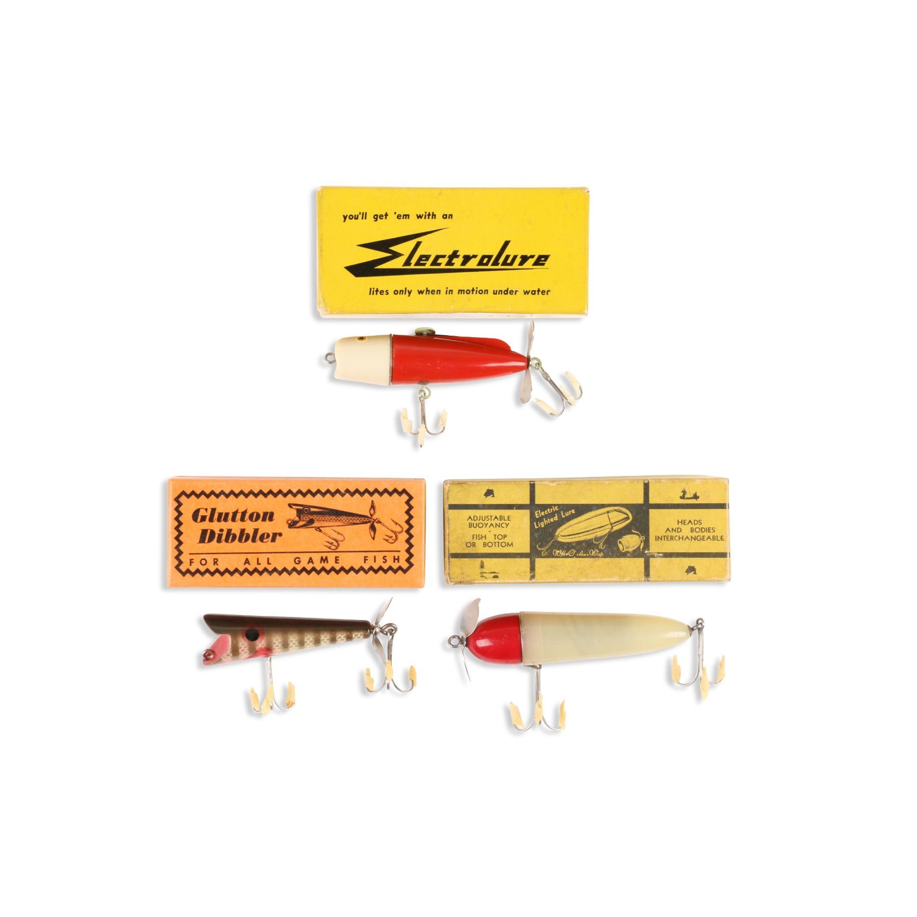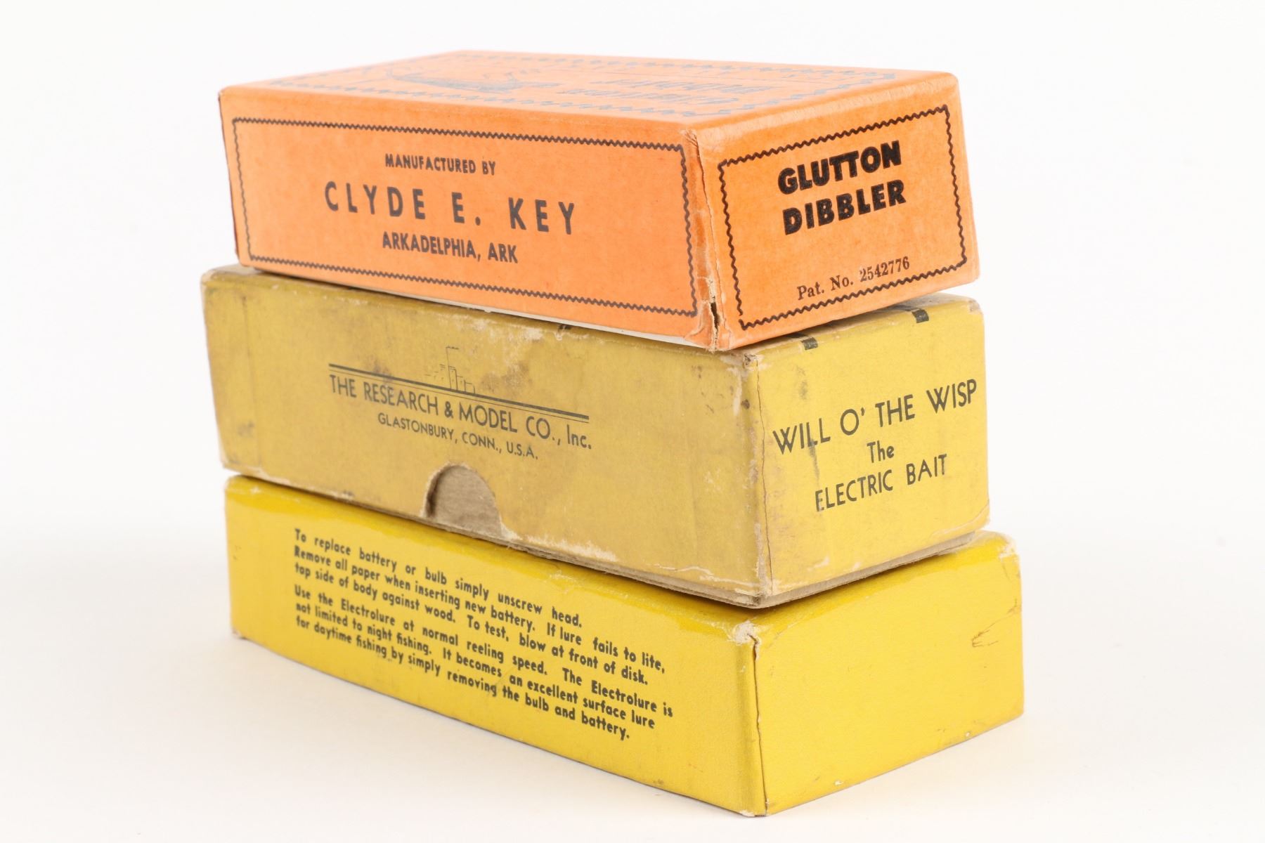 The Electrolure Co., Clyde E Key, The Research & Model Co. Inc., United States. Boxed. Material: Plastic, Wood. Quantity: 3. Grade: VG. 4.5" - 5" boxes Est. $100-125.