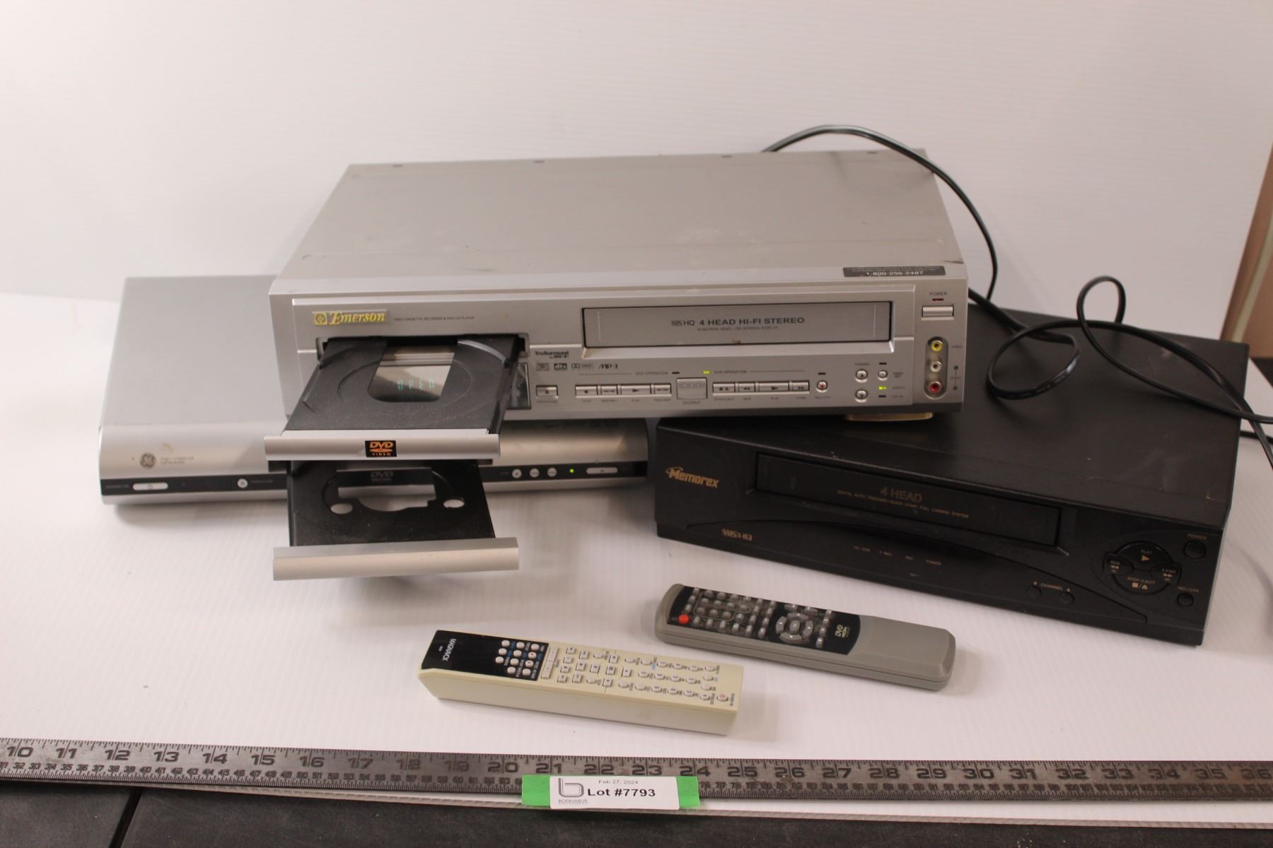 Electronics - Emerson Combo VHS/DVD Player, Memorex 4 Head VHS Player & General Electric DVD Player (All Working)