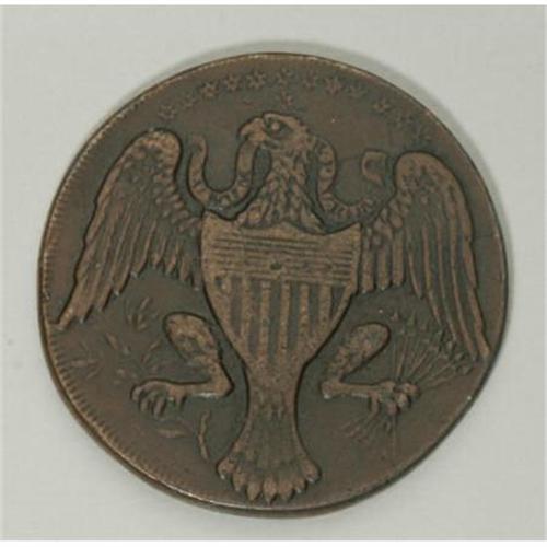 <B>Electrotype of 1792 Washington/Hancock Pattern Cent Uncertified.</B></I> Electrotype of Baker-21, Breen-1229. Since genuine examples are extremely rare, electrotypes are the only collectible means of owning this rare design. Sharpness of XF, with fine details such as the arrows a bit blurry due to incompleteness of the design transfer. Originals are listed on page 78 of the 2008 <I>Guide Book.<BR>From The Texas Collection.</B></I><BR><BR><b>Shipping:</b> Coins & Currency (<a target="_blank" href="http://www.heritageauctions.com/common/shipping.php">view shipping information</a>)