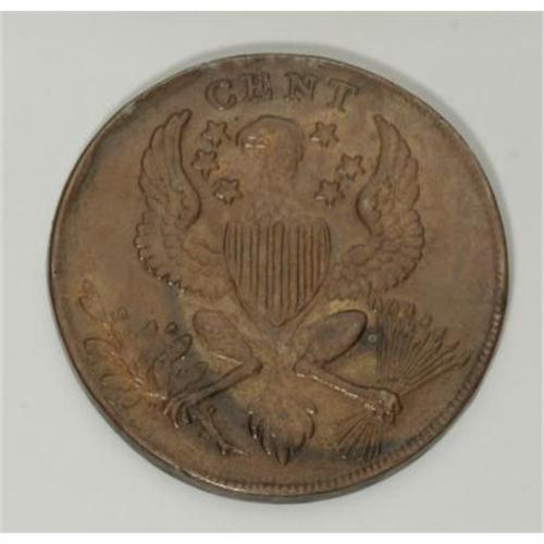 <B>Electrotype of 1792 Washington Roman Head Cent AU50 Burnished Uncertified.</B></I> Electrotype of Baker-19, Breen-1249. Copper. Seam visible on edge. Burnished to provide a prooflike surface similar to the genuine and extremely rare Roman Head cents. The borders are lightly granular, and the chocolate-brown surfaces cede to gunmetal-blue on the obverse center and lower reverse.<BR><I>From The Texas Collection.</B></I><BR><BR><b>Shipping:</b> Coins & Currency (<a target="_blank" href="http://www.heritageauctions.com/common/shipping.php">view shipping information</a>)