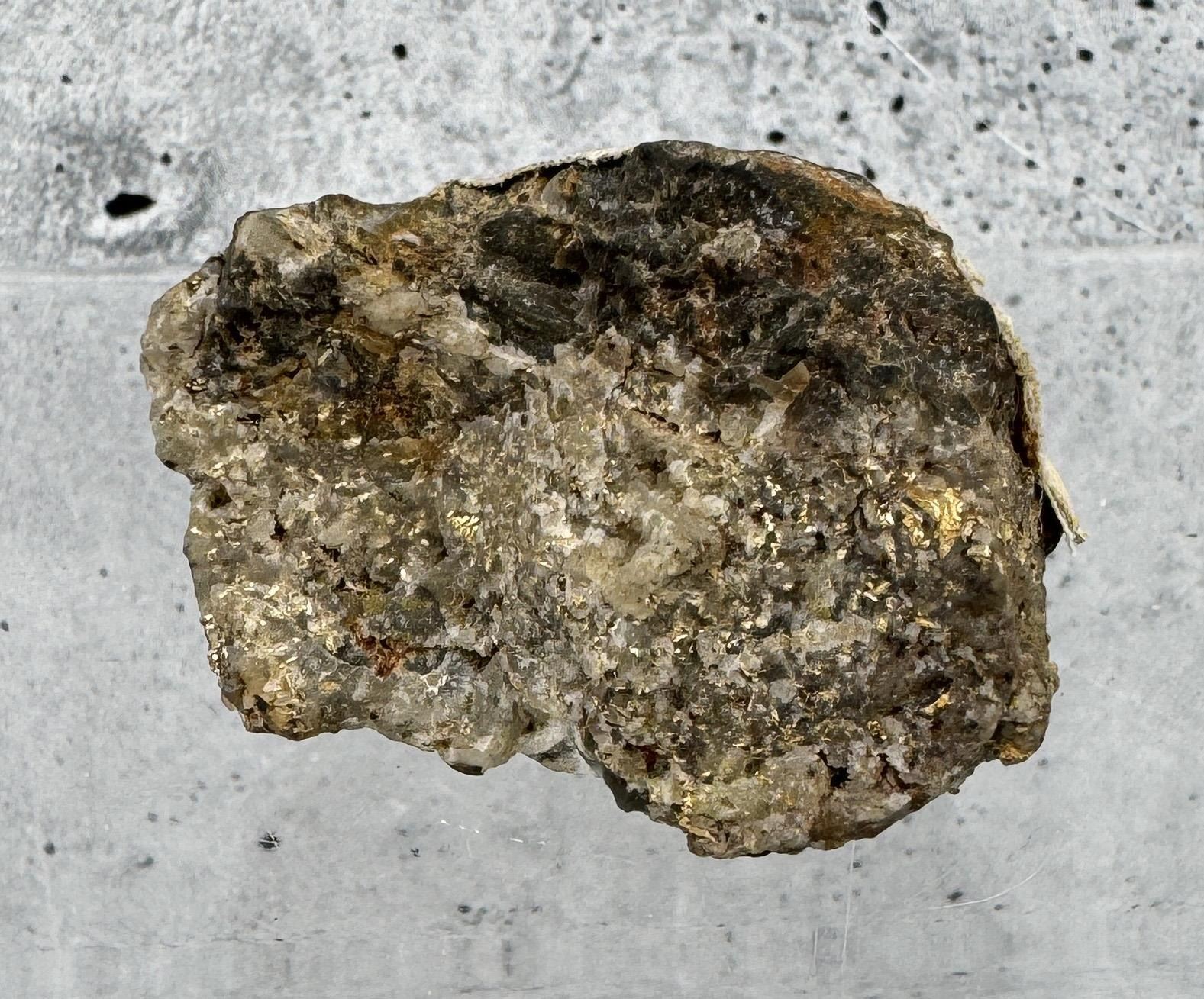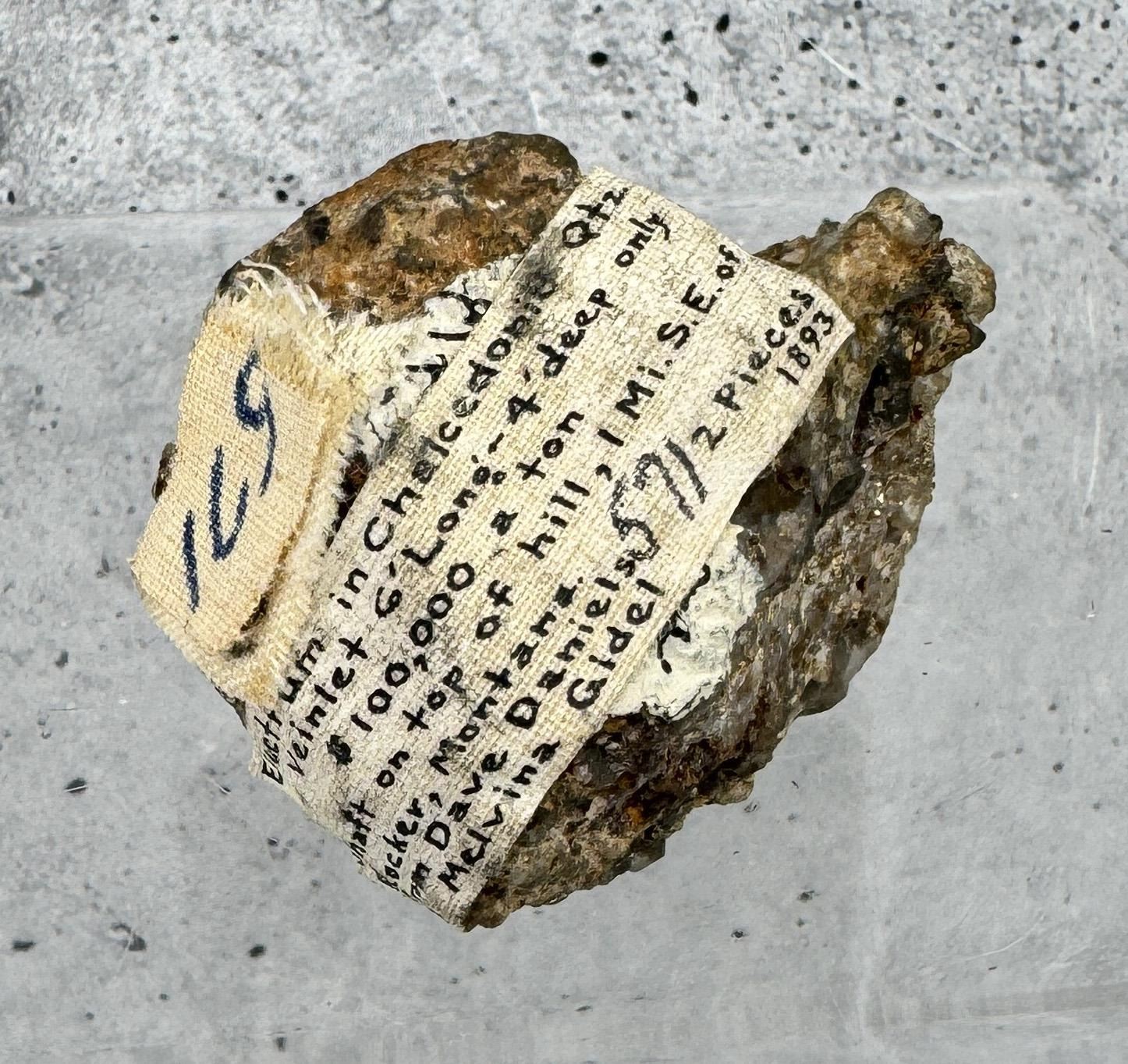 Rocker Montana. Specimen acquired in 1893. XRF machine states that it is 35% gold by weight. 1 5/8" by 1 1/4" by 1 1/4". 55.95 grams. Provenance: From the Estate of Kitty's Copper Shop Butte Montana.