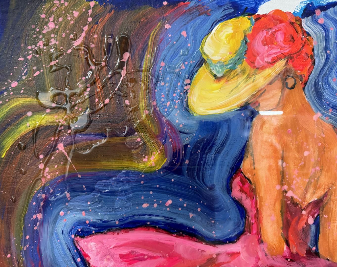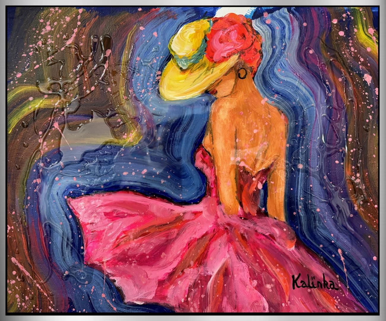 Dynamic original mixed media on canvas. Hand signed by artitst. This artwork comes beautifully framed and ready to hang. Art size 13x16"