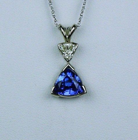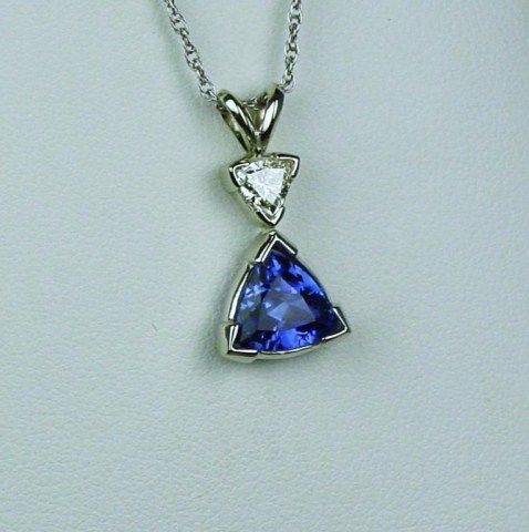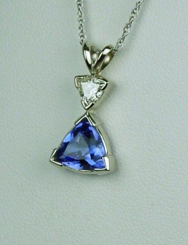 Elegant 14 karat white gold ladies handmade necklace set with a AAA quality Tanzanite weighing approx. 1.60 carats and a side trilliant cut diamond weighing 0.30 carats of H-I color and VS clarity. Retail$2,000-$3,000 Estimate $1,500-$2,000 A fine item