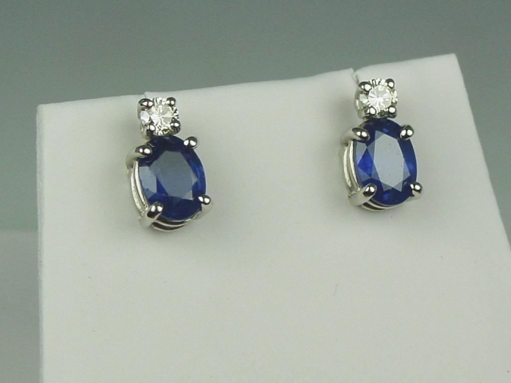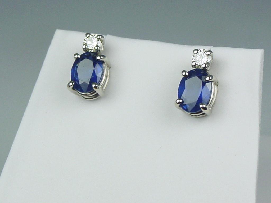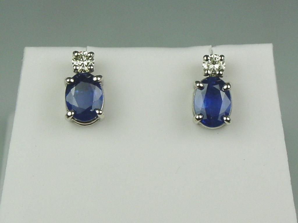 Elegant 14K WG Ladies Custom Made Earrings Set with 2 fine matching Ceylon color sapphires weighing 2.04 carats and 2 matching round diamonds. Retail: $2,250.00Set with 2 fine matching Ceylon color sapphires weighing 2.04 carats and 2 matching round diamonds. Retail: $2,250.00