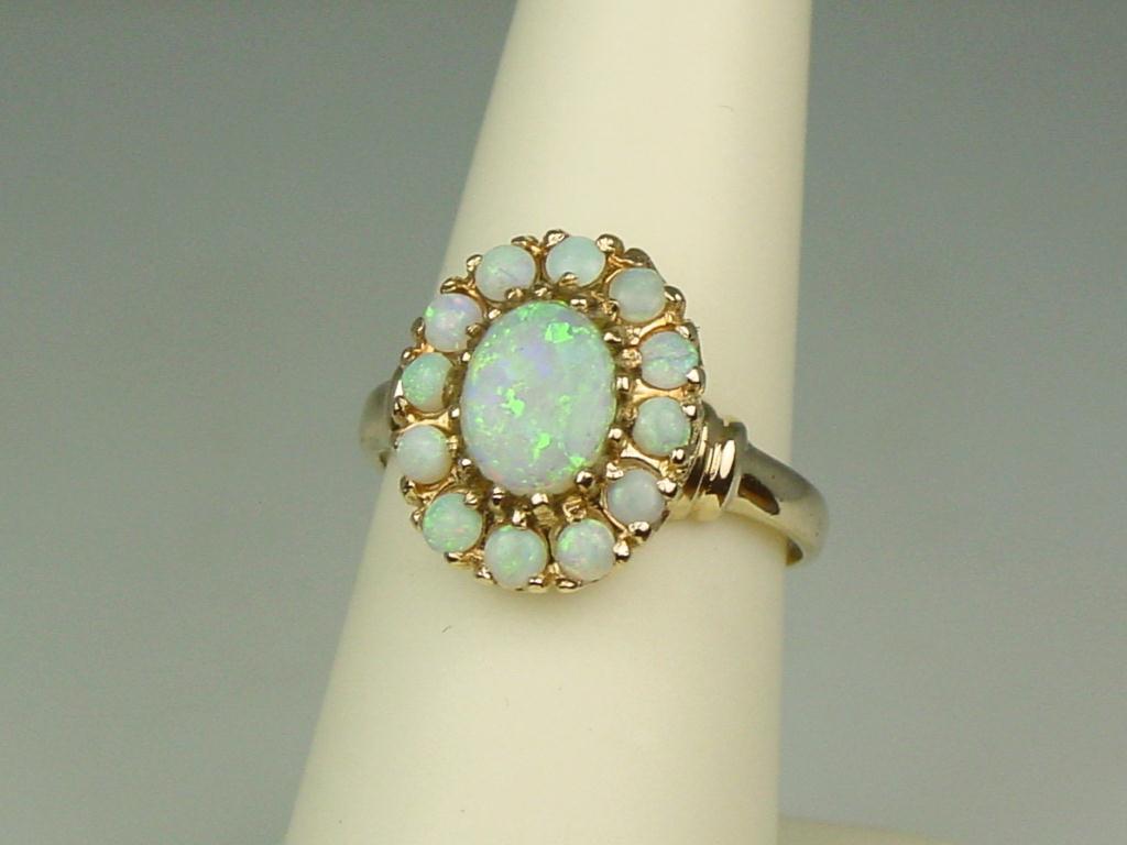 Elegant 14K YG Ladies Antique Design Ring Set with over 3.00 carats in fine Australian Opal. Retail: $1,250.00Set with over 3.00 carats in fine Australian Opal. Retail: $1,250.00