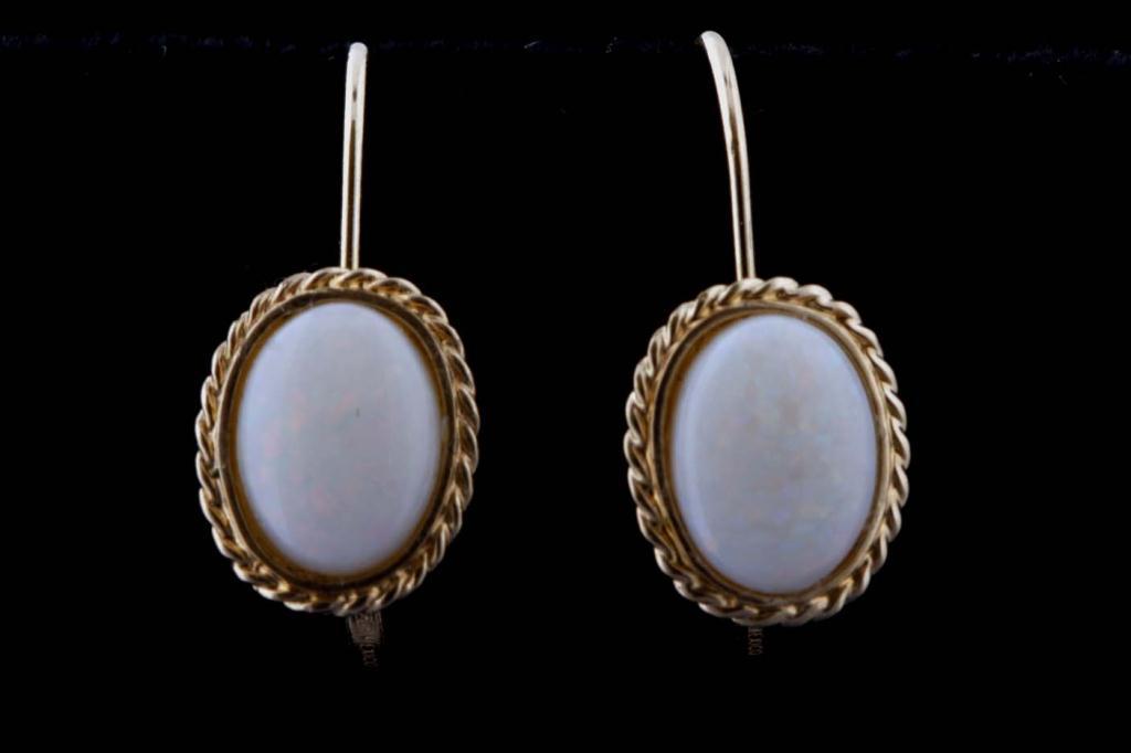 Elegant 14K YG Ladies Opal Earrings bezel set, weighing approx 3.00 carats. Retail $750.00bezel set, weighing approx 3.00 carats. Retail $750.00