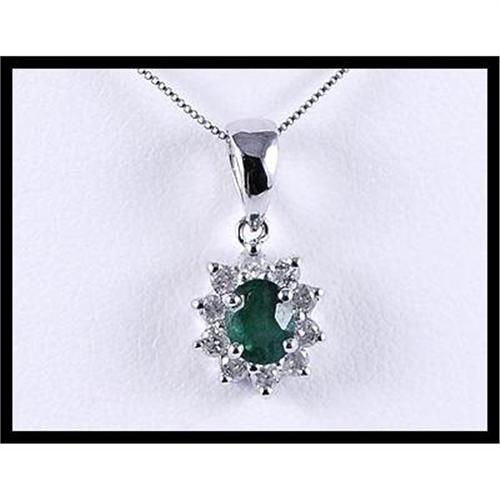 Elegant pendant with 1 emerald that weighs 0.34 carats and 10 diamonds that weigh 0.22 carats set in 18K white gold. The pendant weighs 0.90 grams total weight.