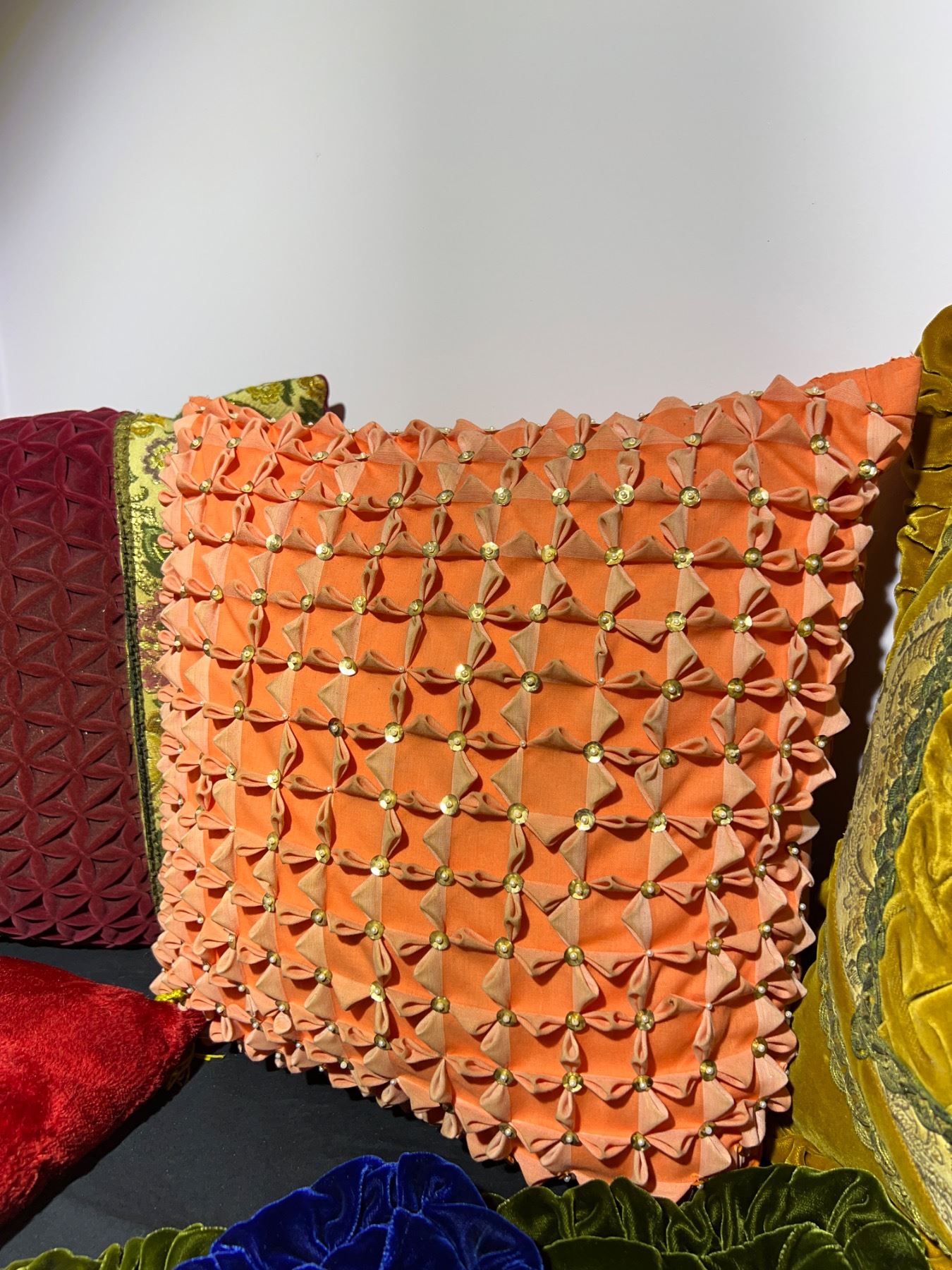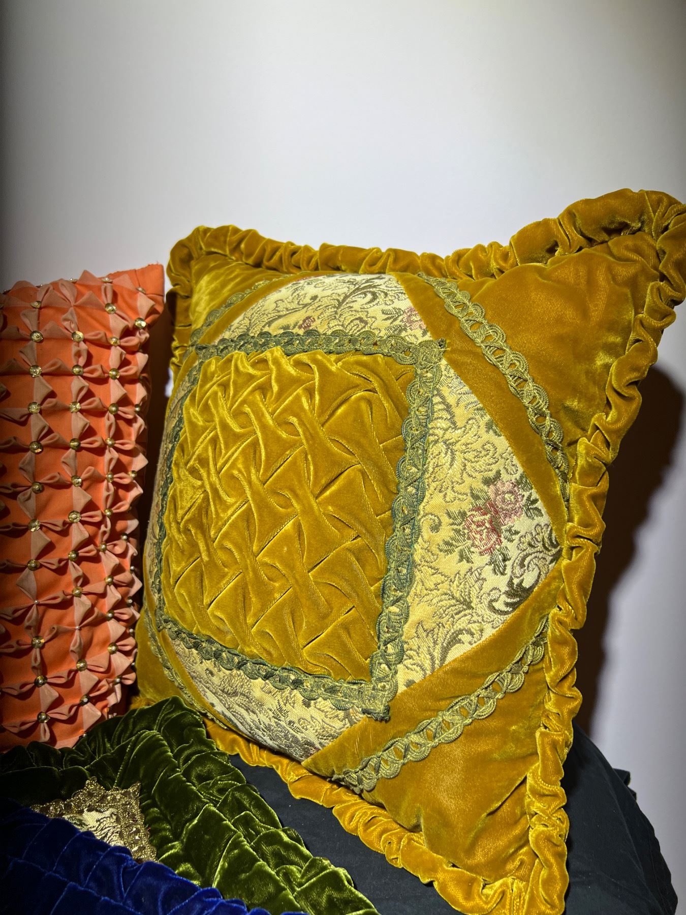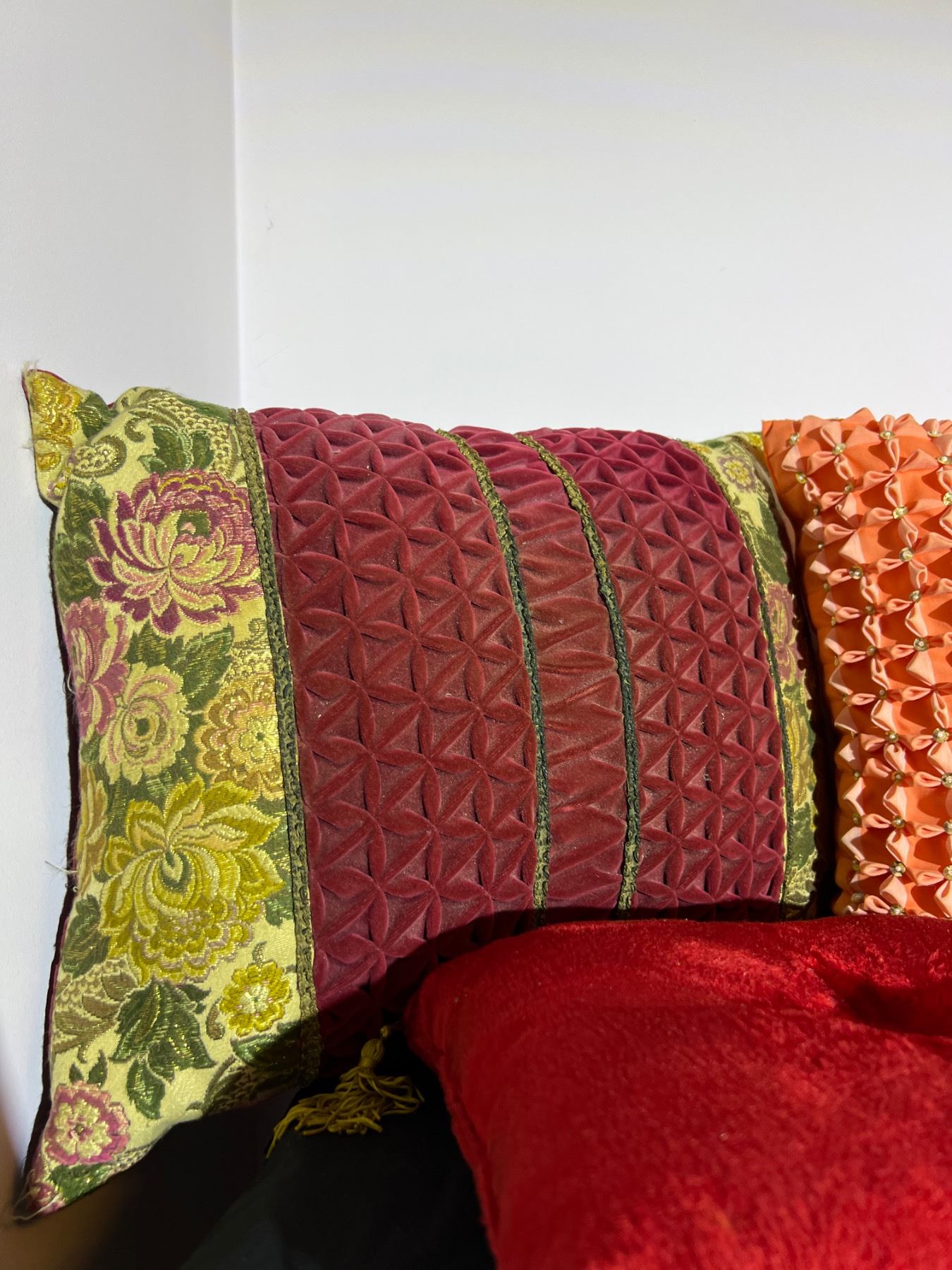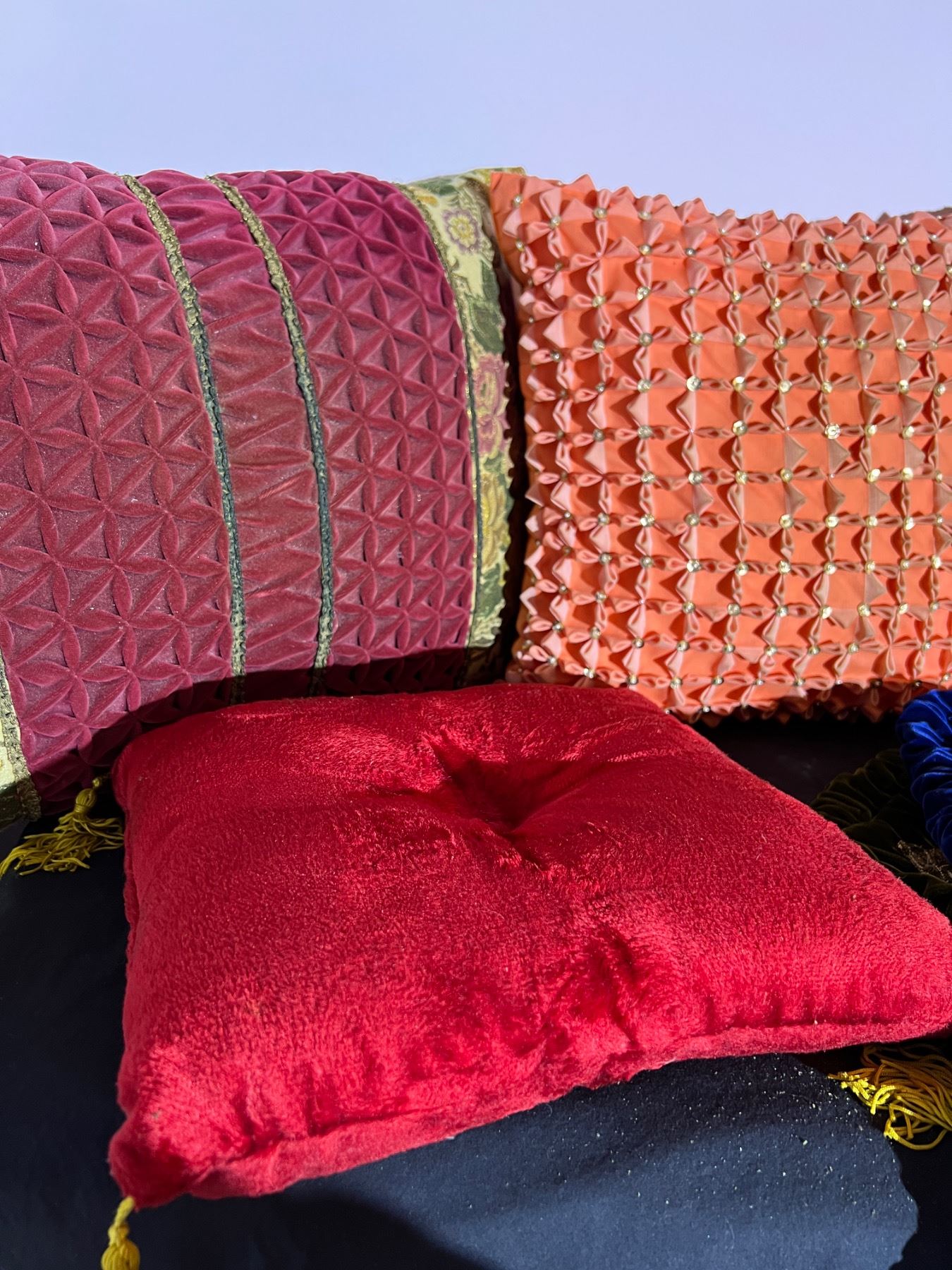Includes four pillows and two covers, The covers are 16x16", the largest pillow is 19x14"