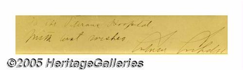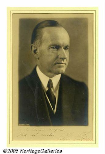 <B>Elegant Calvin Coolidge Autographed Studio Photo</B></I> Rich, studio-quality Harris and Ewing print, boldly inscribed below on mat: "To the Veterans Hospital with best wishes, Calvin Coolidge." 7" x 10.5," 12.5" x 16" as nicely framed. Lot:263