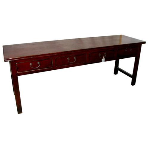The antique furniture we take on for you is a piece of elegant Qing dynasty's altar table made of wood collected from Hebei province in china.A wonderful piece for a room that can hold it.At the beginning of the Qing Dynasty, furniture followed Ming patterns and styles.Qing Furniture showed its own uniqueness with the absorption of western art. It was larger in size with grandeur and pageantry.Engraving was a popular and important means of furniture decoration. The subjects range from auspicious character patterns, to geometric patterns and scenes in nature with animals, mountains and waters, flowers and grass. Color painting, especially gold painting, was widely used.Commercial symbols emerged, such as patterns concerning money and fortune.To later Qing furniture has less engraving ,instead ,inlays of stone, which catch the eye more easily than exquisite engraving, are used to tell of the luxurious lifestyle of the owner. In addition, color and gold painting become the vogue depicting the preference for gaudiness by the wealthy.