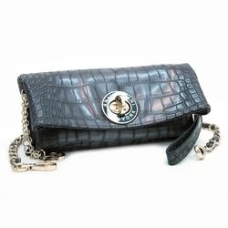 Elegant Croco Evening Clutch w/ Interchangeable Straps - Deep Grey