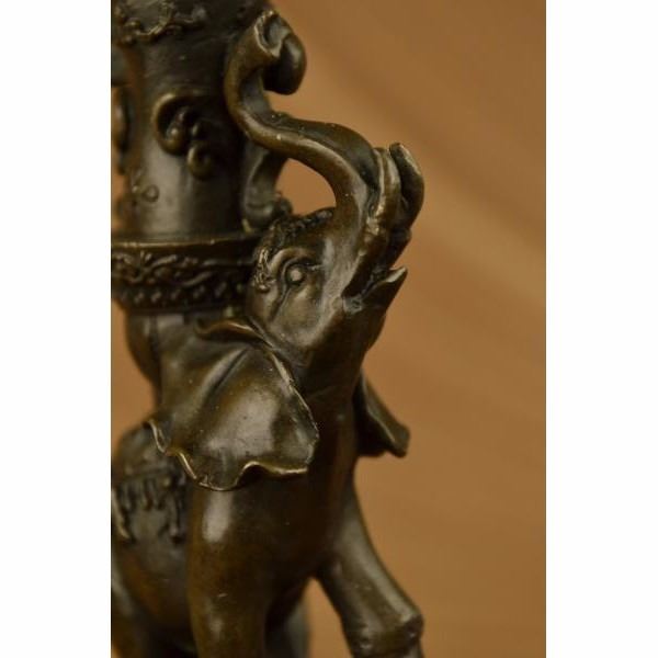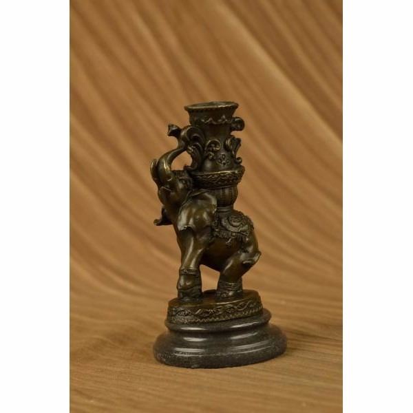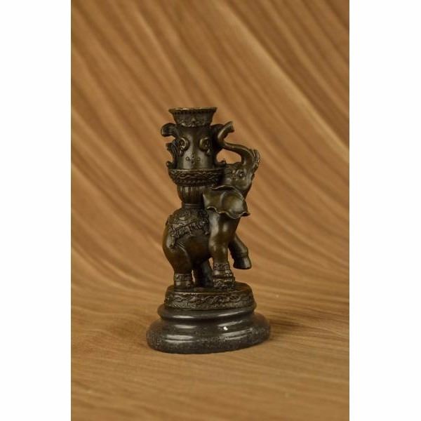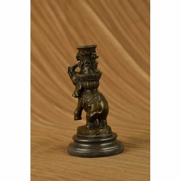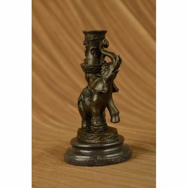 This beautiful elephant animal candle sculpture is divine. Perfect for an elegant yet very creative living room or family room.The details on this astonishing piece are gorgeous and very precise with decorative art pieces on the elephants ears, heads, and body. In a lot of countries the elephant symbolizes honor, strength, stability and patience, and just as you place it for a gift or in your own home it fills the room with love. This is an adorable bronze sculpture cast using the Lost Wax Method and has an exquisite brown patina. it is mounted on a marble base. Bronze Dimensions with Marble Base: Height 8 X Width 4 inches. Weight: 5 LBS. Please Note: This is a reproduction bronze sculpture from the original molded and signed. This featured bronze sculpture is a recast after the original, and has been done recently. This 100% bronze sculpture is an abstract piece certain to be a conversation piece.