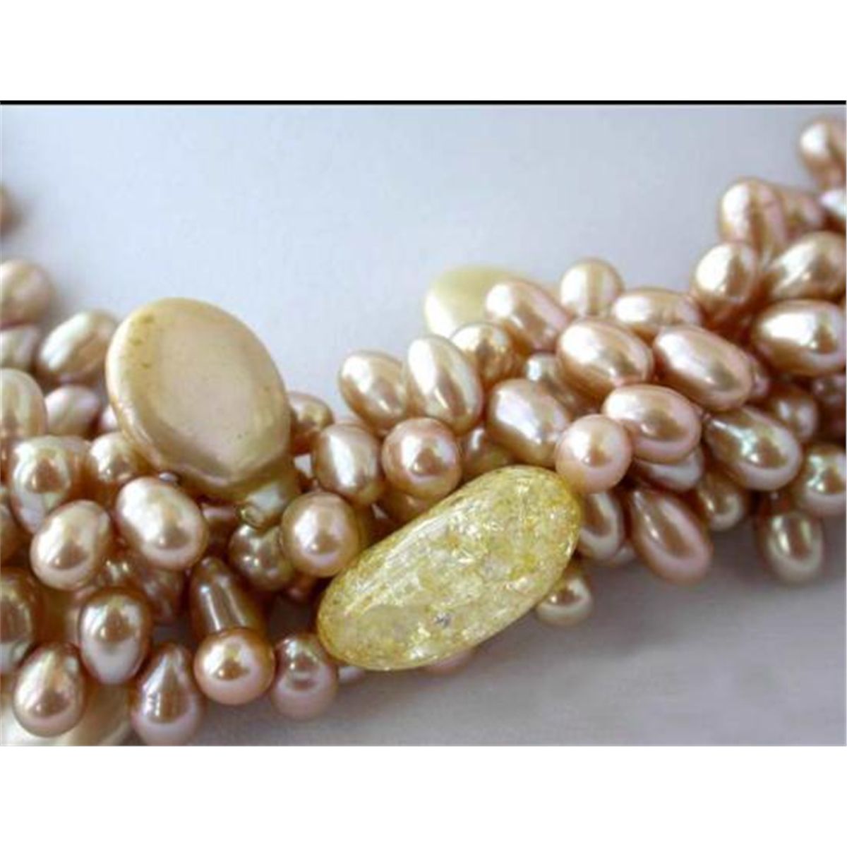 Elegant Five Row 18~ 14mm Rice Pearl and Coin Pearl natural citrine Necklace MWF983