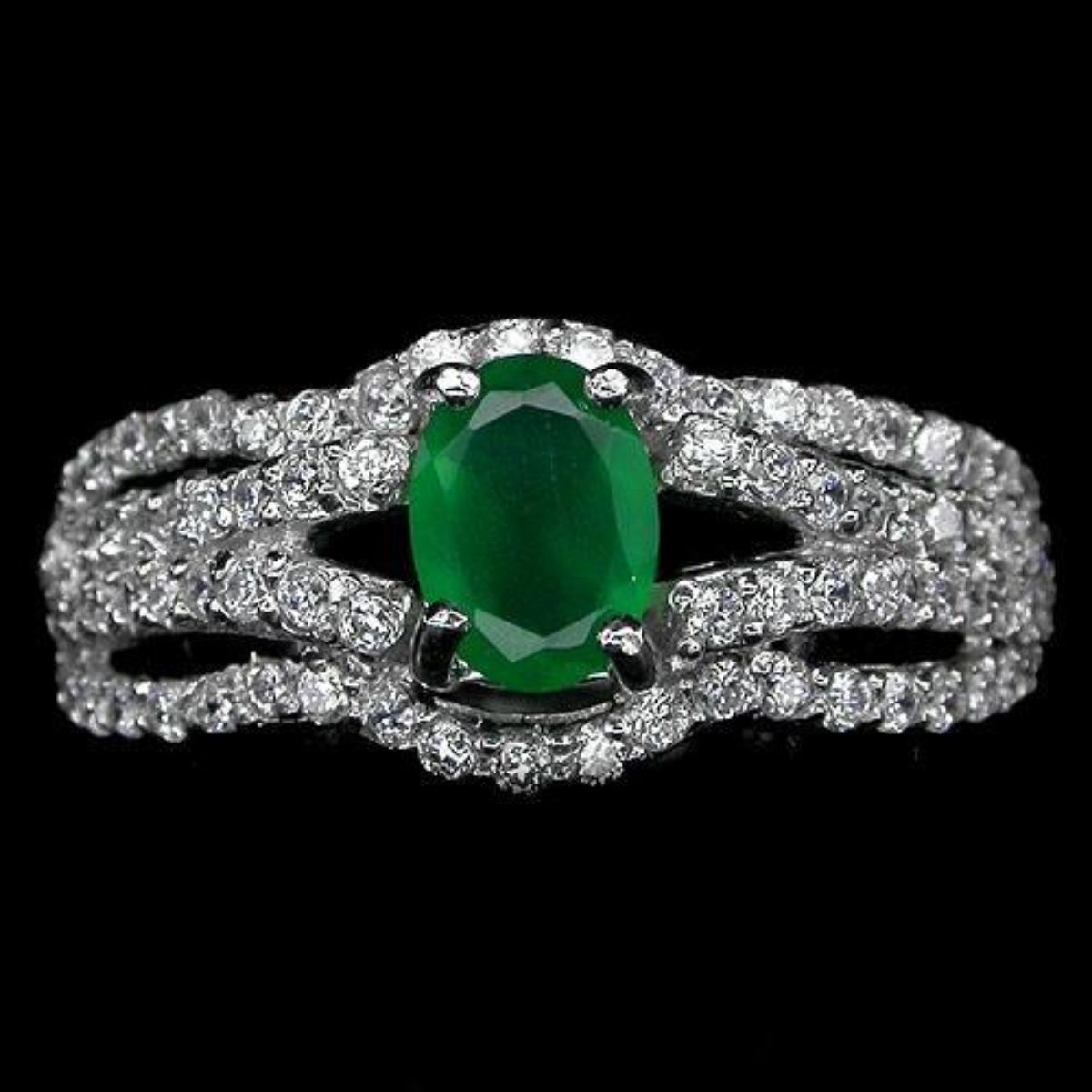 1ct oval cut green aventurine gemstone, surrounded by tiny clear crystals, set into sterling silver, with 14kt white gold pl* can be re-sized by a jeweler.