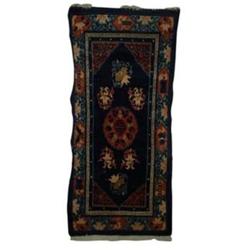 The item is a exquisite pure wool rug with beautiful pattern handmade in Tibet.Rugs and carpets are basic necessities in the Tibetan daily life.The high quality hand spun,vegetable dyed look,and the primitive but highly stylized patterns greatly appealed to westerners.Typically made for use as mats to sit on or for meditation,door and window covers,horse saddles,bed covers and pillar wrapping,the traditional Tibetan weaving generally reflect traditional Tibetan culture and religion.However,Chinese designs were also dominant as seen in the display of dragons,phoenix,clouds, floral and lotus images.